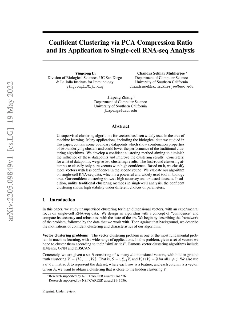 Confident Clustering via PCA Compression Ratio and Its Application to