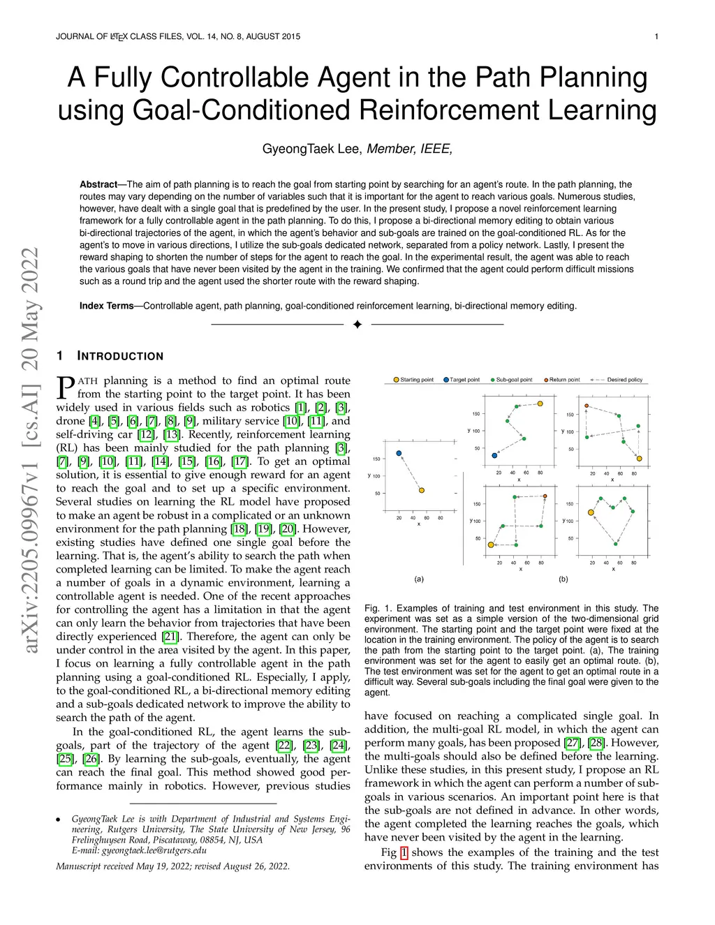 The aim of path planning is to reach the goal from starting point by searching for the route of an agent. In the path planning, the routes may vary depending on the number of variables such that it is important for the agent to reach various goals. Numerous studies, however, have dealt with a single goal that is predefined by the user. In the present study, I propose a novel reinforcement learning framework for a fully controllable agent in the path planning. To do this, I propose a bi-directional memory editing to obtain various bi-directional trajectories of the agent, in which the behavior of the agent and sub-goals are trained on the goal-conditioned RL. As for moving the agent in various directions, I utilize the sub-goals dedicated network, separated from a policy network. Lastly, I present the reward shaping to shorten the number of steps for the agent to reach the goal. In the experimental result, the agent was able to reach the various goals that have never been visited by the agent in the training. We confirmed that the agent could perform difficult missions such as a round trip and the agent used the shorter route with the reward shaping.