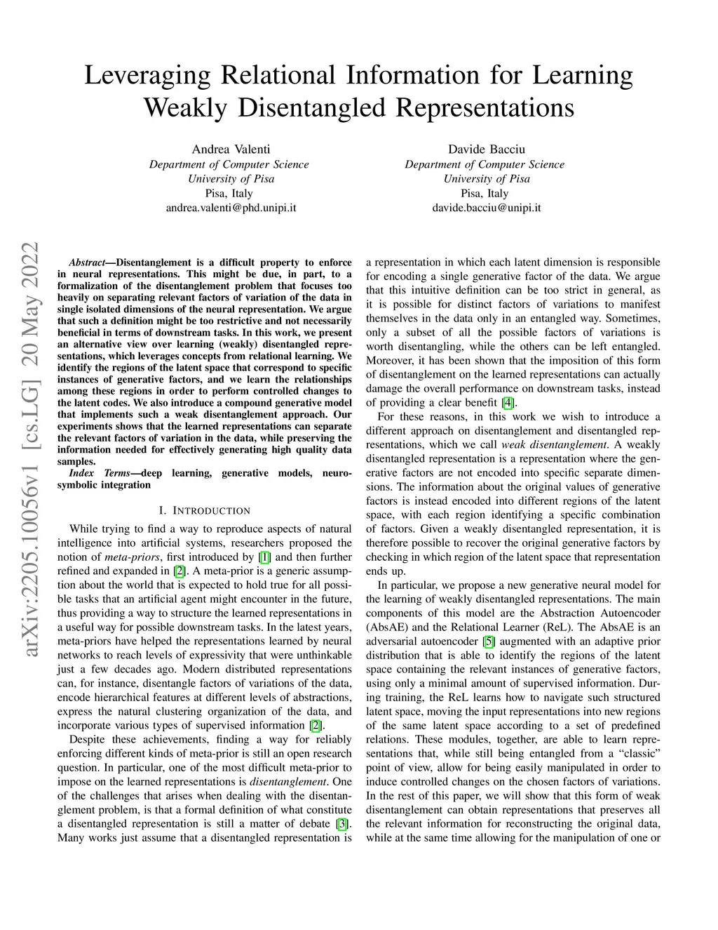 Disentanglement is a difficult property to enforce in neural representations. This might be due, in part, to a formalization of the disentanglement problem that focuses too heavily on separating relevant factors of variation of the data in single isolated dimensions of the neural representation. We argue that such a definition might be too restrictive and not necessarily beneficial in terms of downstream tasks. In this work, we present an alternative view over learning (weakly) disentangled representations, which leverages concepts from relational learning. We identify the regions of the latent space that correspond to specific instances of generative factors, and we learn the relationships among these regions in order to perform controlled changes to the latent codes. We also introduce a compound generative model that implements such a weak disentanglement approach. Our experiments shows that the learned representations can separate the relevant factors of variation in the data, while preserving the information needed for effectively generating high quality data samples.