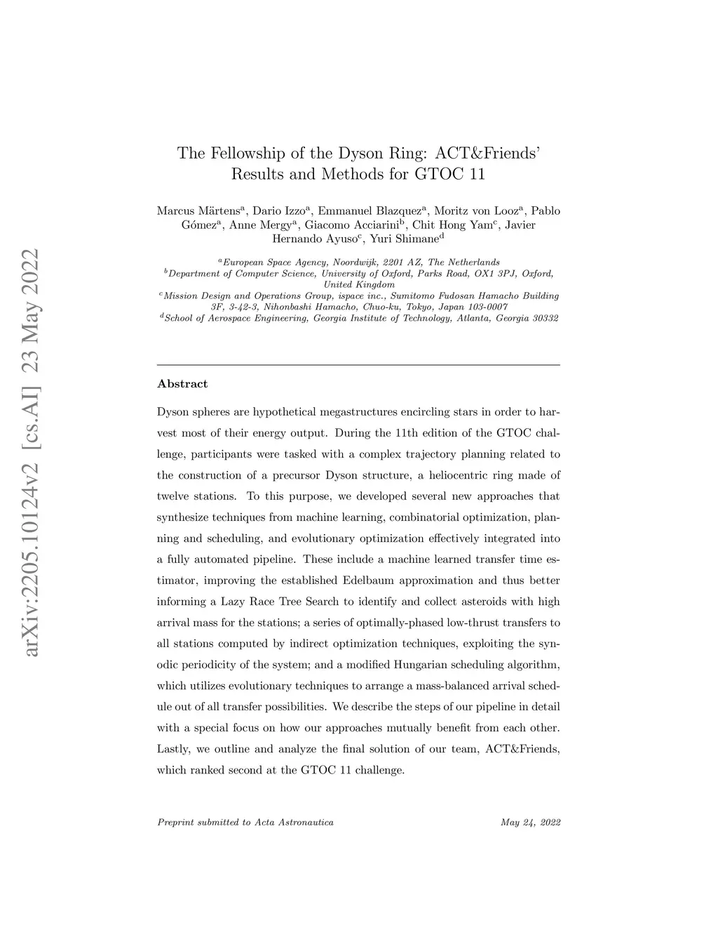 Dyson spheres are hypothetical megastructures encircling stars in order to harvest most of their energy output. During the 11th edition of the GTOC challenge, participants were tasked with a complex trajectory planning related to the construction of a precursor Dyson structure, a heliocentric ring made of twelve stations. To this purpose, we developed several new approaches that synthesize techniques from machine learning, combinatorial optimization, planning and scheduling, and evolutionary optimization effectively integrated into a fully automated pipeline. These include a machine learned transfer time estimator, improving the established Edelbaum approximation and thus better informing a Lazy Race Tree Search to identify and collect asteroids with high arrival mass for the stations; a series of optimally-phased low-thrust transfers to all stations computed by indirect optimization techniques, exploiting the synodic periodicity of the system; and a modified Hungarian scheduling algorithm, which utilizes evolutionary techniques to arrange a mass-balanced arrival schedule out of all transfer possibilities. We describe the steps of our pipeline in detail with a special focus on how our approaches mutually benefit from each other. Lastly, we outline and analyze the final solution of our team, ACT&Friends, which ranked second at the GTOC 11 challenge.