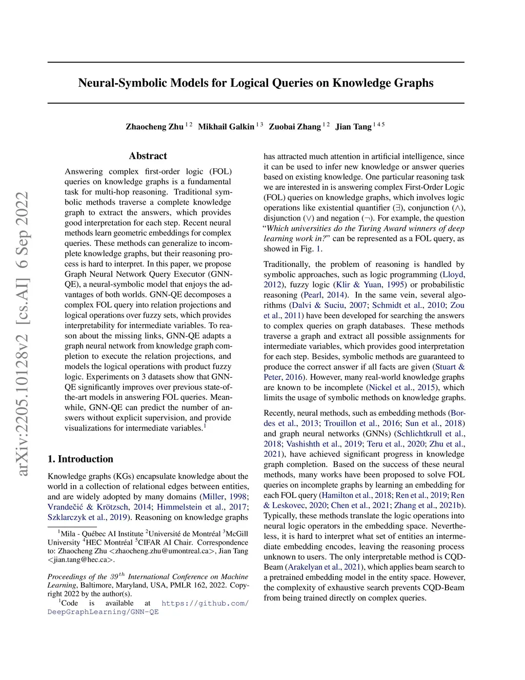 Neural-Symbolic Models for Logical Queries on Knowledge Graphs