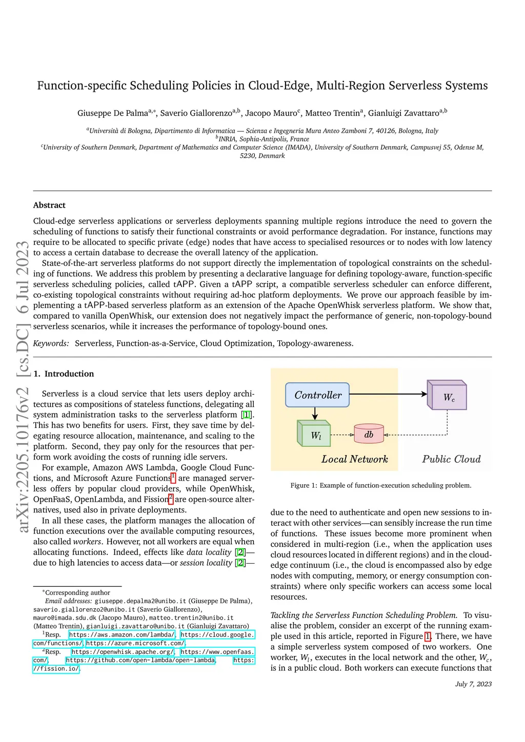 Topology-aware Serverless Function-Execution Scheduling