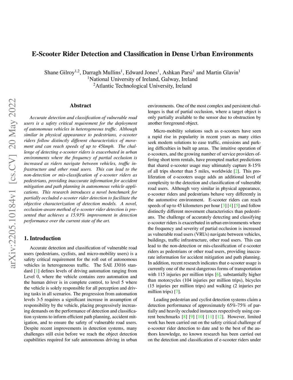 Accurate detection and classification of vulnerable road users is a safety critical requirement for the deployment of autonomous vehicles in heterogeneous traffic. Although similar in physical appearance to pedestrians, e-scooter riders follow distinctly different characteristics of movement and can reach speeds of up to 45kmph. The challenge of detecting e-scooter riders is exacerbated in urban environments where the frequency of partial occlusion is increased as riders navigate between vehicles, traffic infrastructure and other road users. This can lead to the non-detection or mis-classification of e-scooter riders as pedestrians, providing inaccurate information for accident mitigation and path planning in autonomous vehicle applications. This research introduces a novel benchmark for partially occluded e-scooter rider detection to facilitate the objective characterization of detection models. A novel, occlusion-aware method of e-scooter rider detection is presented that achieves a 15.93% improvement in detection performance over the current state of the art.