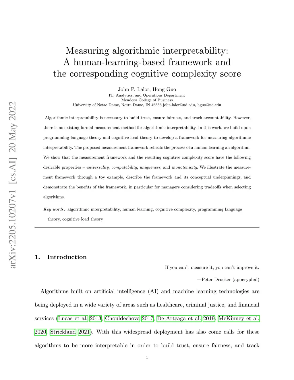 Measuring algorithmic interpretability: A human-learning-based framework