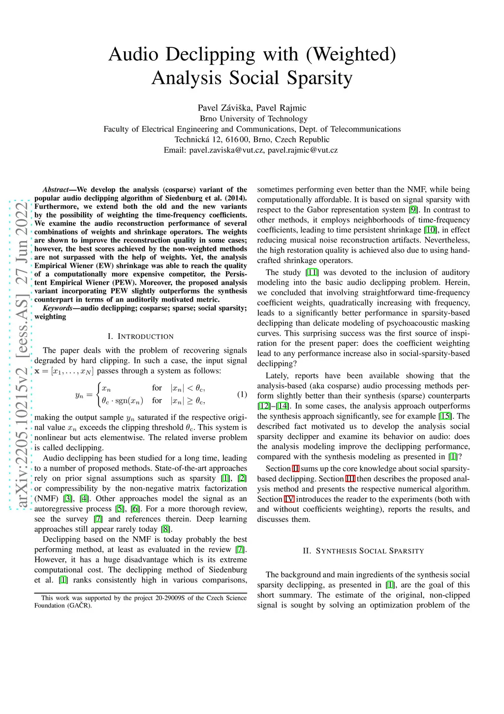 Analysis Social Sparsity Audio Declipper