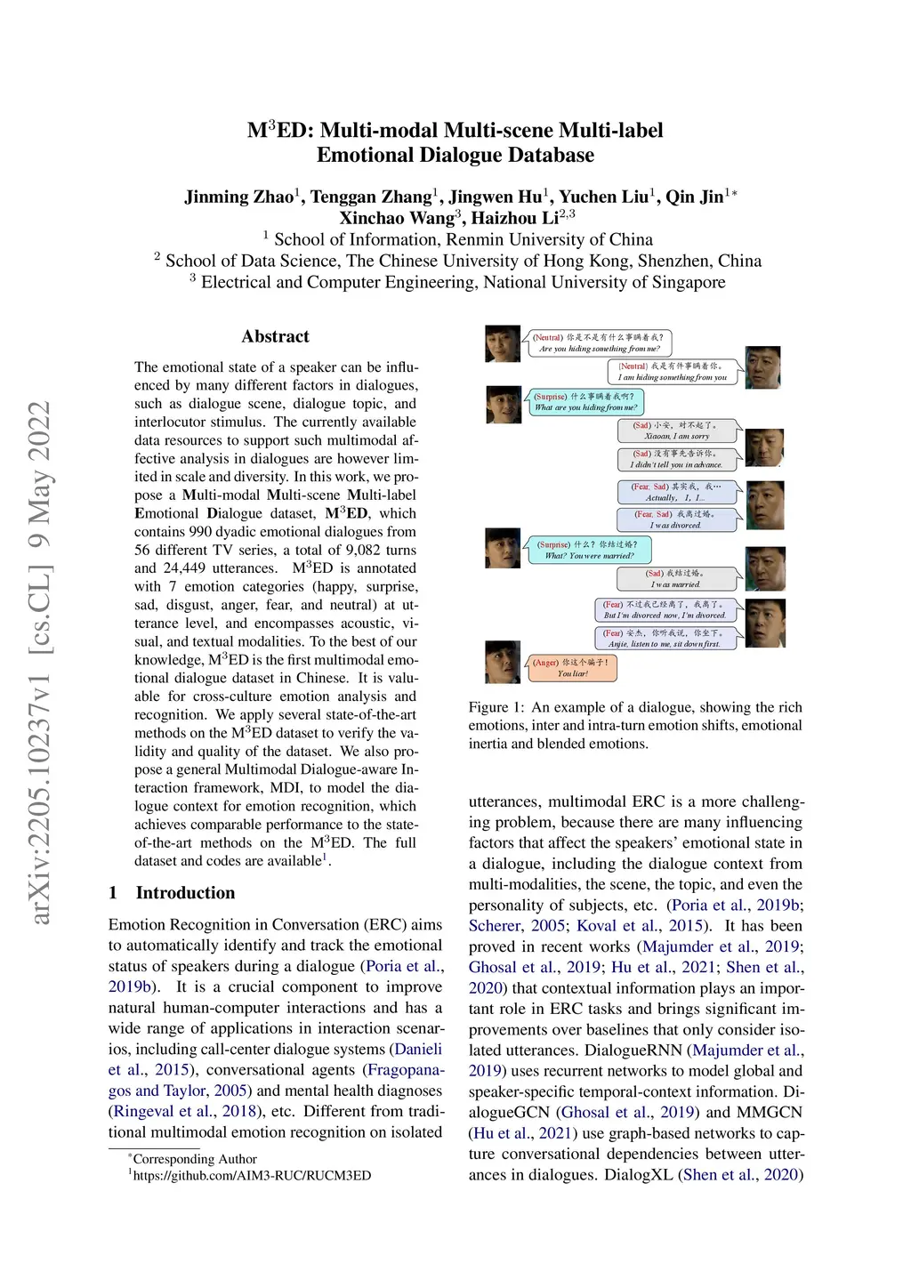 M3ED: Multi-modal Multi-scene Multi-label Emotional Dialogue Database
