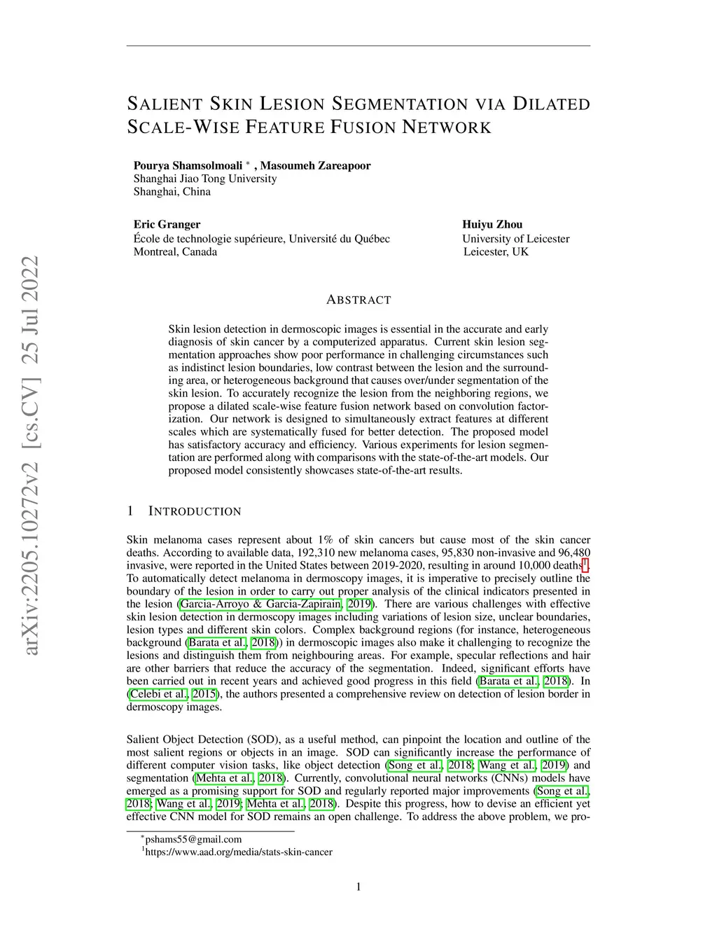Salient Skin Lesion Segmentation via Dilated Scale-Wise Feature Fusion