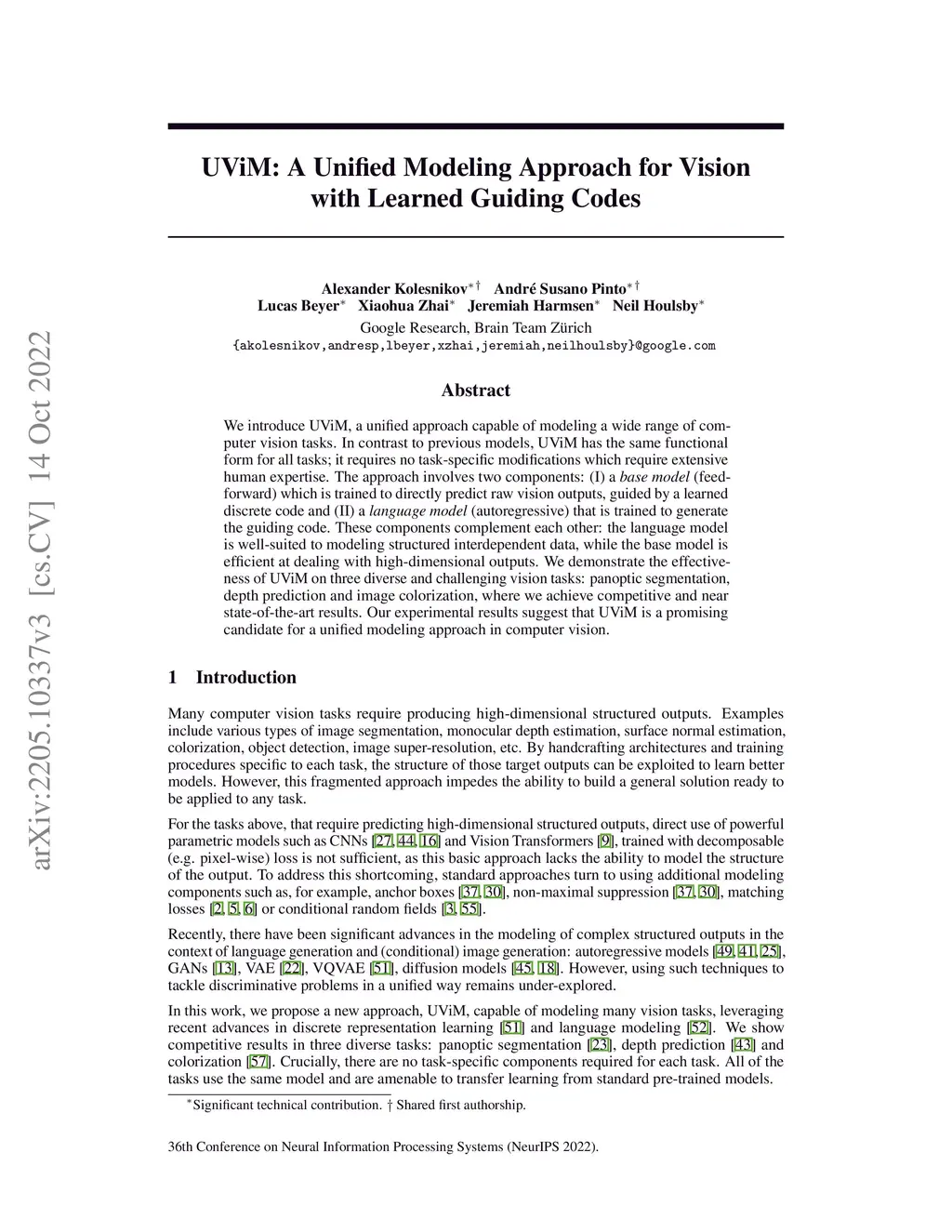 UViM: A Unified Modeling Approach for Vision with Learned Guiding Codes
