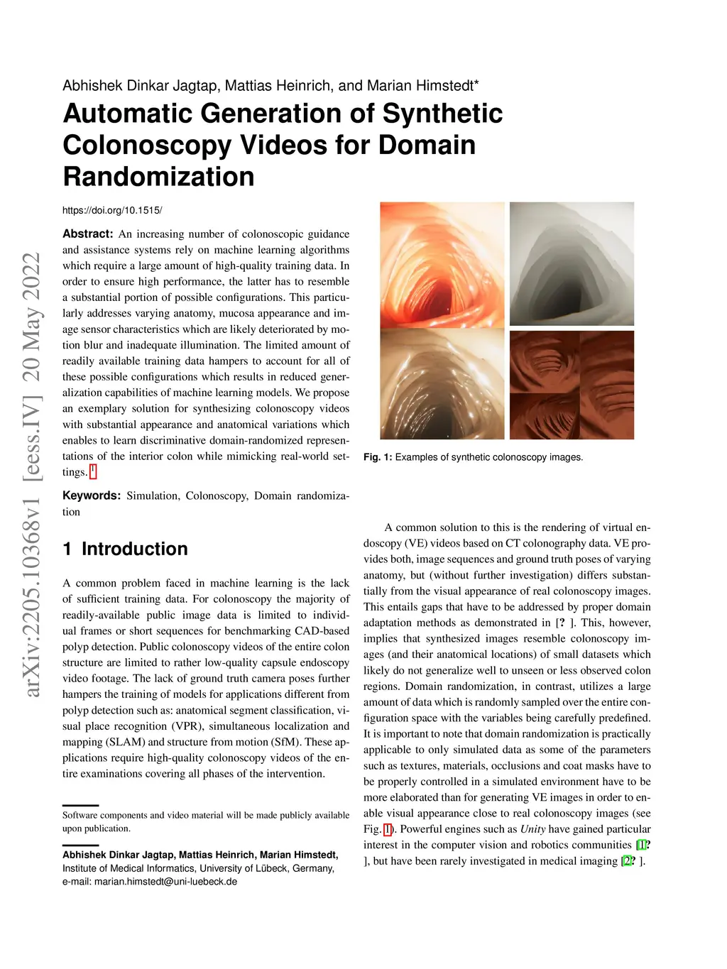 Automatic Generation of Synthetic Colonoscopy Videos for Domain