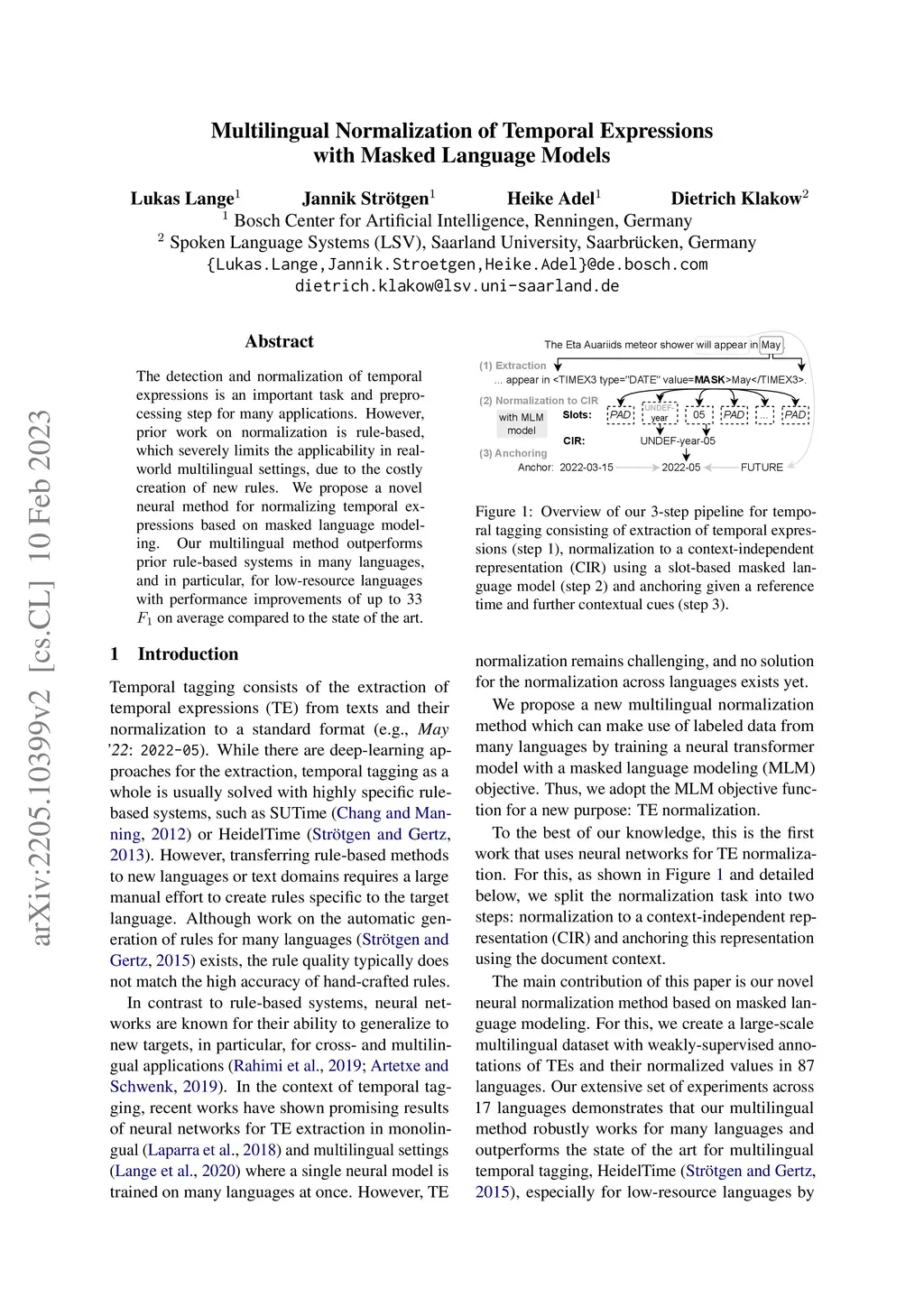 Multilingual Normalization of Temporal Expressions with Masked Language