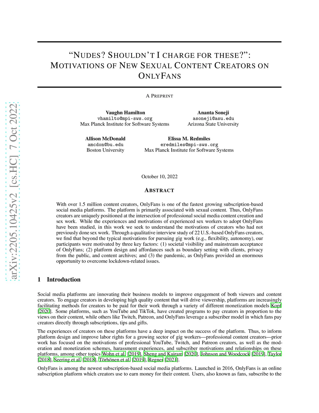Content Creators on OnlyFans