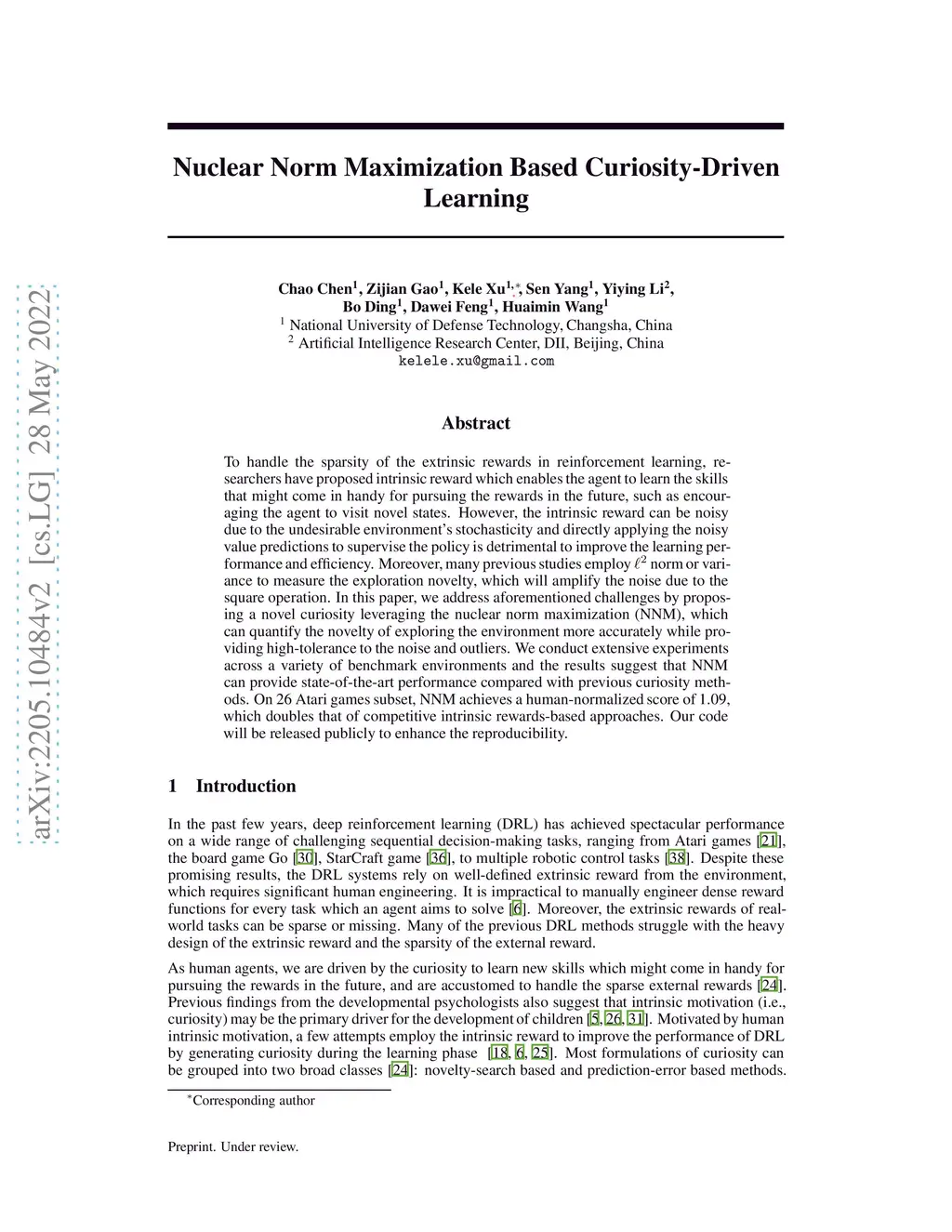 Nuclear Norm Maximization Based Curiosity-Driven Learning