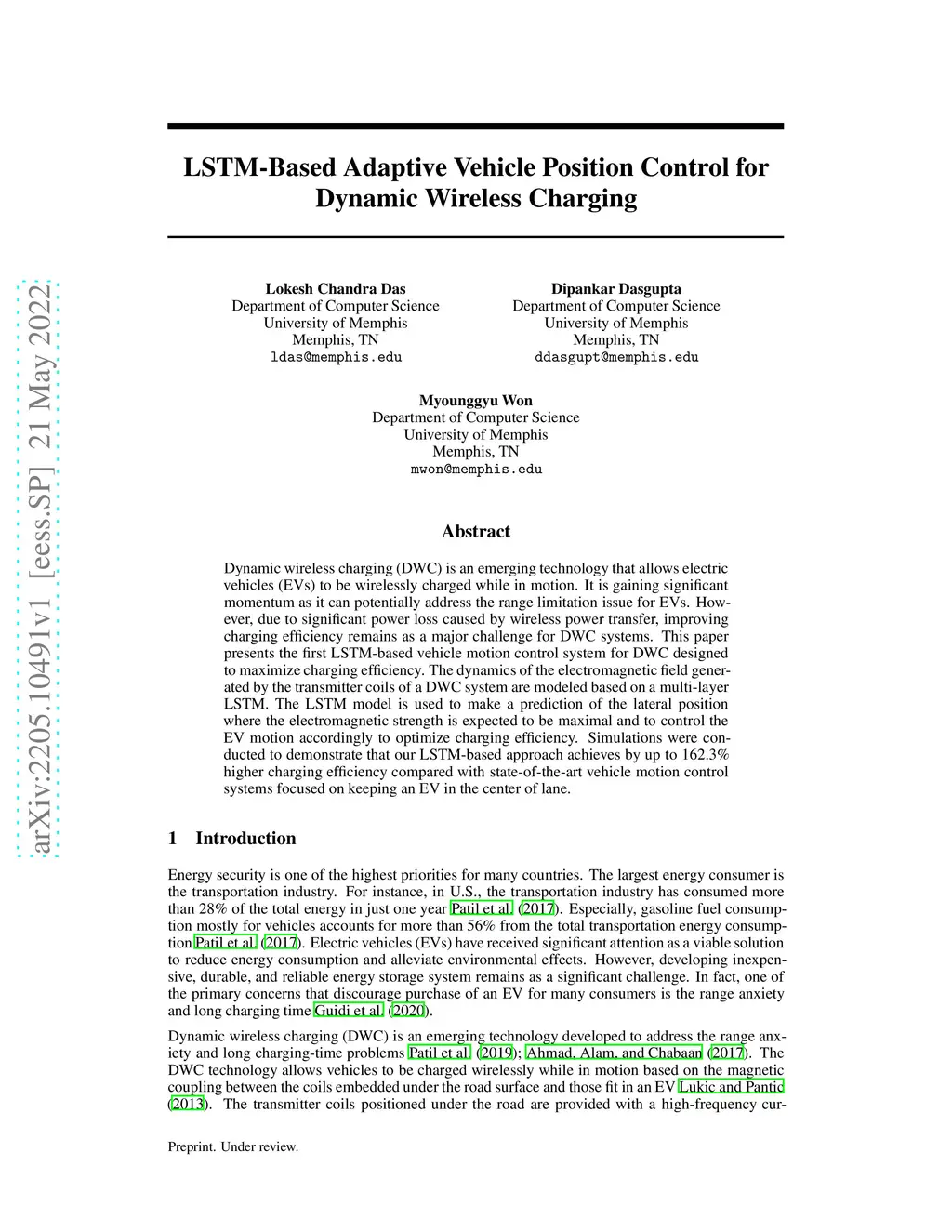 LSTM-Based Adaptive Vehicle Position Control for Dynamic Wireless