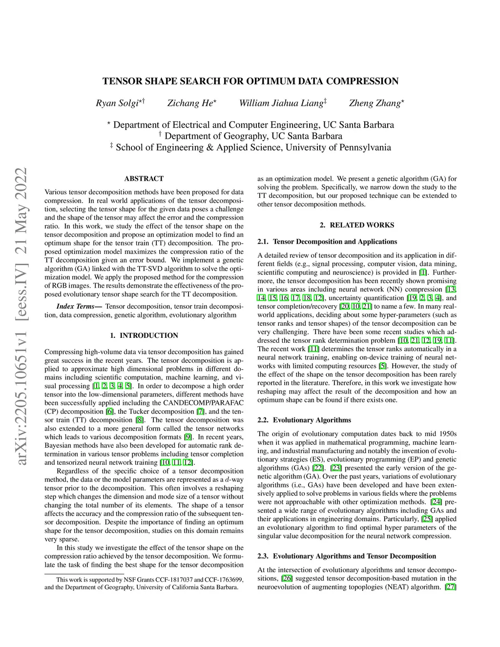 Tensor Shape Search for Optimum Data Compression