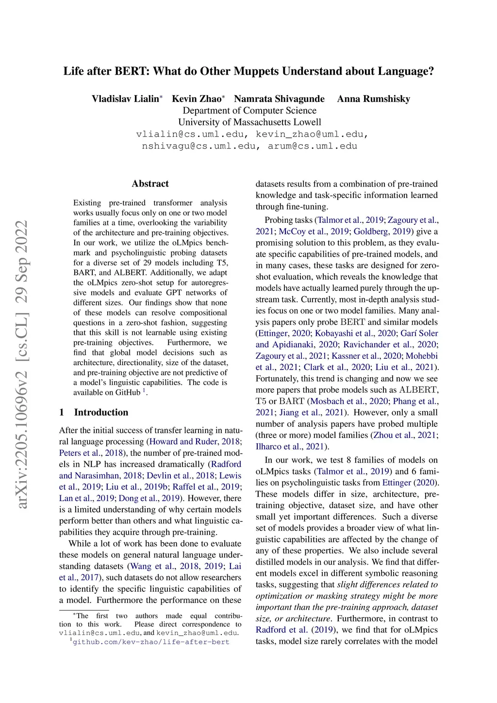 Existing pre-trained transformer analysis works usually focus only on one or two model families at a time, overlooking the variability of the architecture and pre-training objectives. In our work, we utilize the oLMpics benchmark and psycholinguistic probing datasets for a diverse set of 29 models including T5, BART, and ALBERT. Additionally, we adapt the oLMpics zero-shot setup for autoregressive models and evaluate GPT networks of different sizes. Our findings show that none of these models can resolve compositional questions in a zero-shot fashion, suggesting that this skill is not learnable using existing pre-training objectives. Furthermore, we find that global model decisions such as architecture, directionality, size of the dataset, and pre-training objective are not predictive of a model's linguistic capabilities.