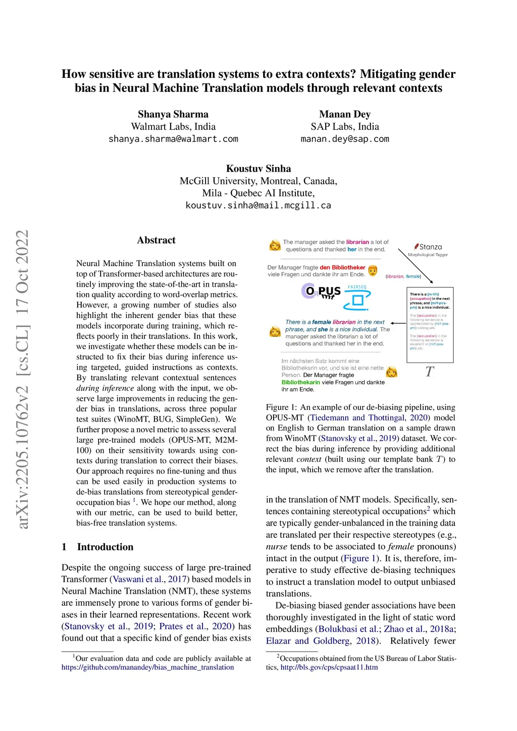 Neural Machine Translation systems built on top of Transformer-based architectures are routinely improving the state-of-the-art in translation quality according to word-overlap metrics. However, a growing number of studies also highlight the inherent gender bias that these models incorporate during training, which reflects poorly in their translations. In this work, we investigate whether these models can be instructed to fix their bias during inference using targeted, guided instructions as contexts. By translating relevant contextual sentences during inference along with the input, we observe large improvements in reducing the gender bias in translations, across three popular test suites (WinoMT, BUG, SimpleGen). We further propose a novel metric to assess several large pre-trained models (OPUS-MT, M2M-100) on their sensitivity towards using contexts during translation to correct their biases. Our approach requires no fine-tuning and thus can be used easily in production systems to de-bias translations from stereotypical gender-occupation bias 1. We hope our method, along with our metric, can be used to build better, bias-free translation systems.
