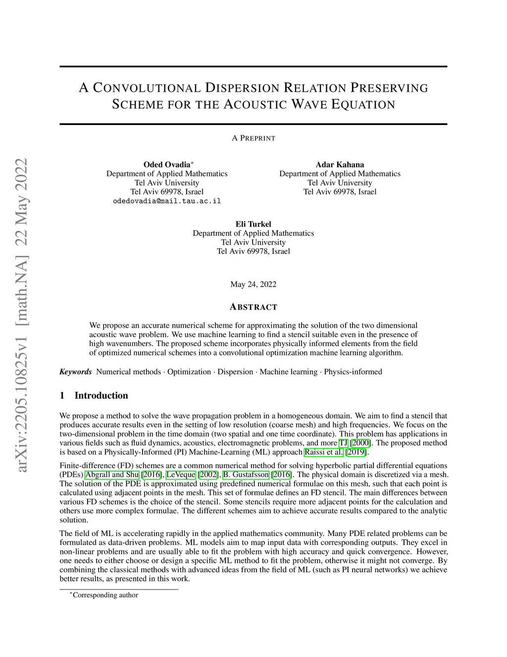 We propose an accurate numerical scheme for approximating the solution of the two dimensional acoustic wave problem. We use machine learning to find a stencil suitable even in the presence of high wavenumbers. The proposed scheme incorporates physically informed elements from the field of optimized numerical schemes into a convolutional optimization machine learning algorithm.