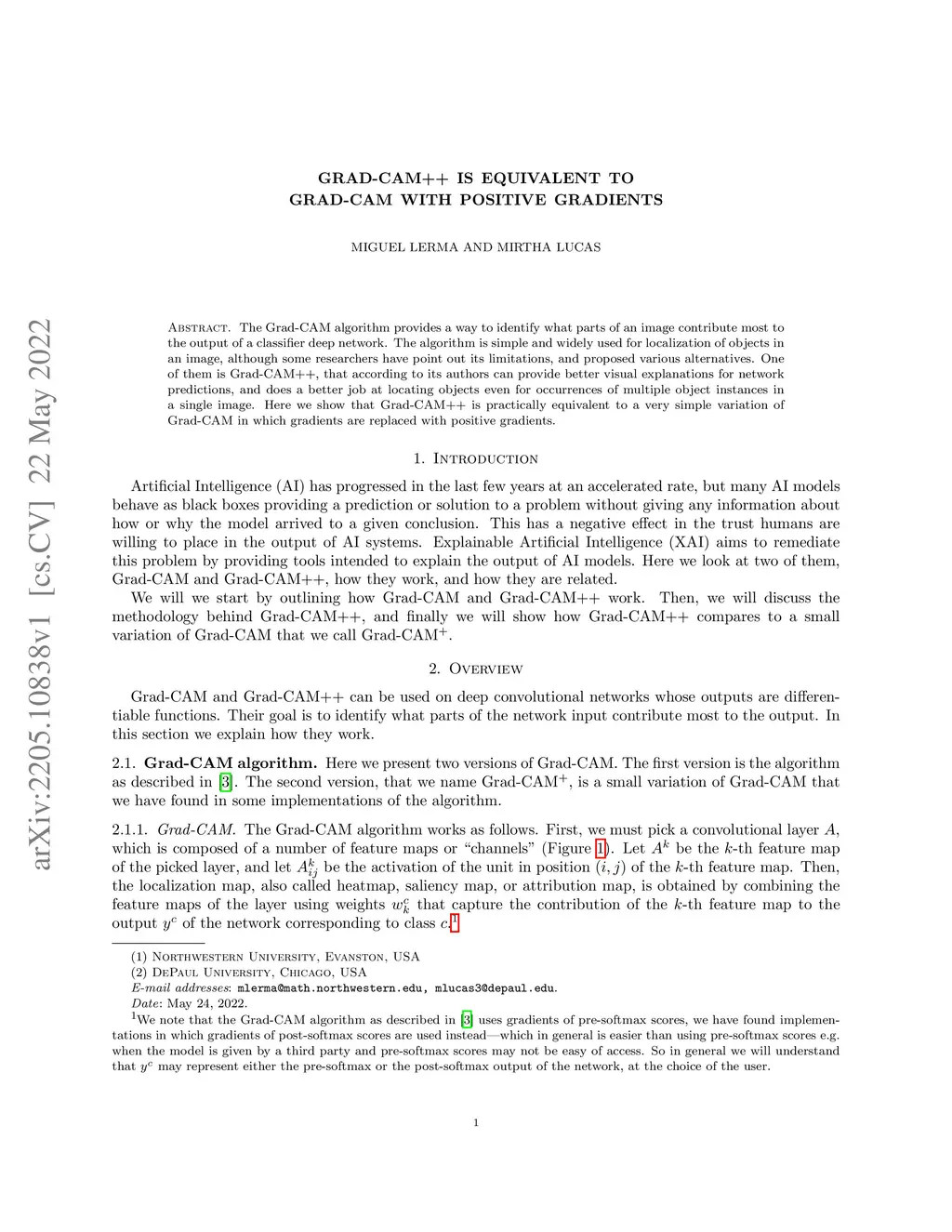 The Grad-CAM algorithm provides a way to identify what parts of an image contribute most to the output of a classifier deep network. The algorithm is simple and widely used for localization of objects in an image, although some researchers have point out its limitations, and proposed various alternatives. One of them is Grad-CAM++, that according to its authors can provide better visual explanations for network predictions, and does a better job at locating objects even for occurrences of multiple object instances in a single image. Here we show that Grad-CAM++ is practically equivalent to a very simple variation of Grad-CAM in which gradients are replaced with positive gradients.