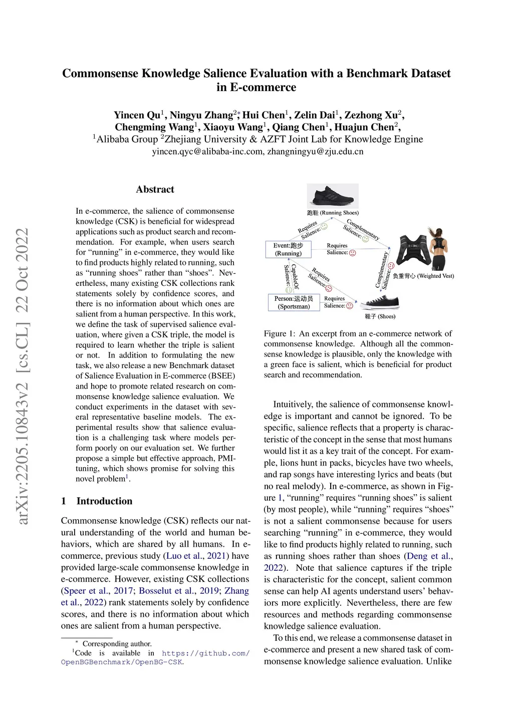 In e-commerce, the salience of commonsense knowledge (CSK) is beneficial for widespread applications such as product search and recommendation. For example, when users search for ``running'' in e-commerce, they would like to find products highly related to running, such as ``running shoes'' rather than ``shoes''. Nevertheless, many existing CSK collections rank statements solely by confidence scores, and there is no information about which ones are salient from a human perspective. In this work, we define the task of supervised salience evaluation, where given a CSK triple, the model is required to learn whether the triple is salient or not. In addition to formulating the new task, we also release a new Benchmark dataset of Salience Evaluation in E-commerce (BSEE) and hope to promote related research on commonsense knowledge salience evaluation. We conduct experiments in the dataset with several representative baseline models. The experimental results show that salience evaluation is a challenging task where models perform poorly on our evaluation set. We further propose a simple but effective approach, PMI-tuning, which shows promise for solving this novel problem. Code is available in \url{https://github.com/OpenBGBenchmark/OpenBG-CSK.