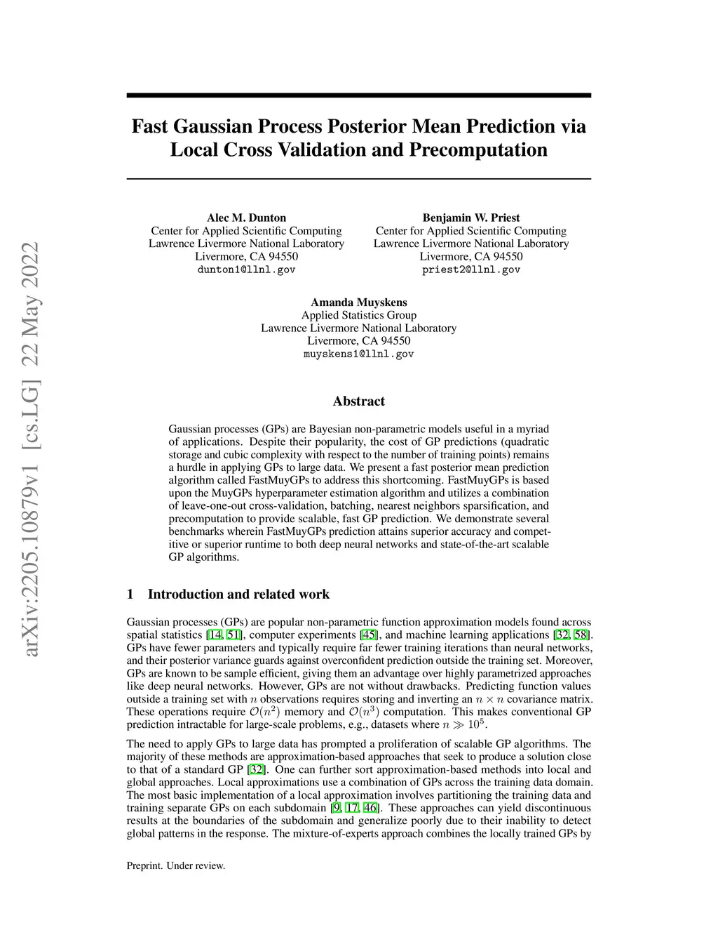 Gaussian processes (GPs) are Bayesian non-parametric models useful in a myriad of applications. Despite their popularity, the cost of GP predictions (quadratic storage and cubic complexity with respect to the number of training points) remains a hurdle in applying GPs to large data. We present a fast posterior mean prediction algorithm called FastMuyGPs to address this shortcoming. FastMuyGPs is based upon the MuyGPs hyperparameter estimation algorithm and utilizes a combination of leave-one-out cross-validation, batching, nearest neighbors sparsification, and precomputation to provide scalable, fast GP prediction. We demonstrate several benchmarks wherein FastMuyGPs prediction attains superior accuracy and competitive or superior runtime to both deep neural networks and state-of-the-art scalable GP algorithms.