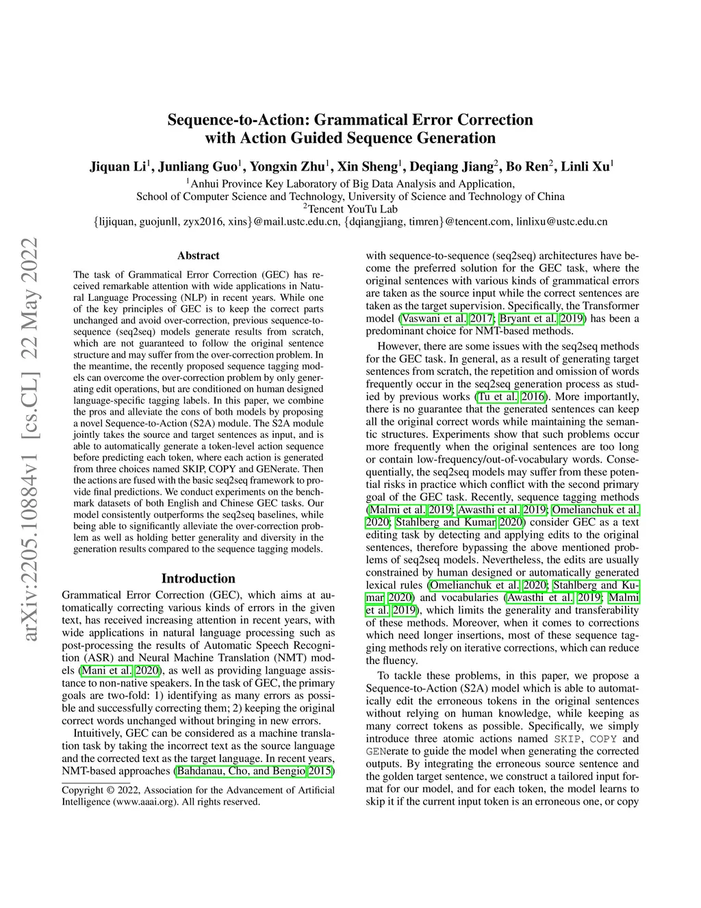 Sequence-to-Action: Grammatical Error Correction with Action Guided