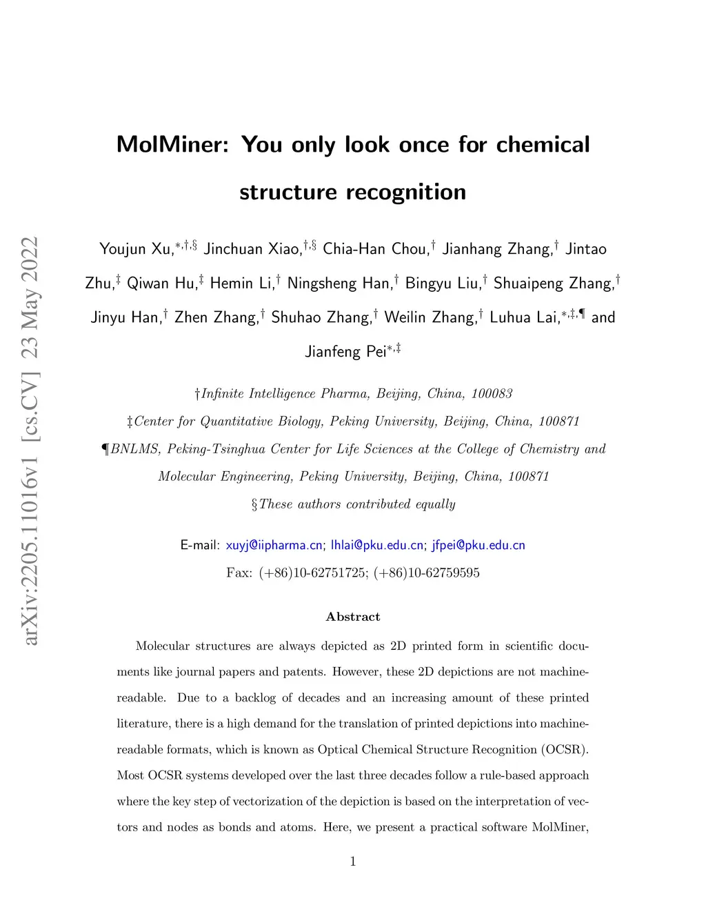 Molecular structures are always depicted as 2D printed form in scientific documents like journal papers and patents. However, these 2D depictions are not machine-readable. Due to a backlog of decades and an increasing amount of these printed literature, there is a high demand for the translation of printed depictions into machine-readable formats, which is known as Optical Chemical Structure Recognition (OCSR). Most OCSR systems developed over the last three decades follow a rule-based approach where the key step of vectorization of the depiction is based on the interpretation of vectors and nodes as bonds and atoms. Here, we present a practical software MolMiner, which is primarily built up using deep neural networks originally developed for semantic segmentation and object detection to recognize atom and bond elements from documents. These recognized elements can be easily connected as a molecular graph with distance-based construction algorithm. We carefully evaluate our software on four benchmark datasets with the state-of-the-art performance. Various real application scenarios are also tested, yielding satisfactory outcomes. The free download links of Mac and Windows versions are available: Mac: https://molminer-cdn.iipharma.cn/pharma-mind/artifact/latest/mac/PharmaMind-mac-latest-setup.dmg and Windows: https://molminer-cdn.iipharma.cn/pharma-mind/artifact/latest/win/PharmaMind-win-latest-setup.exe