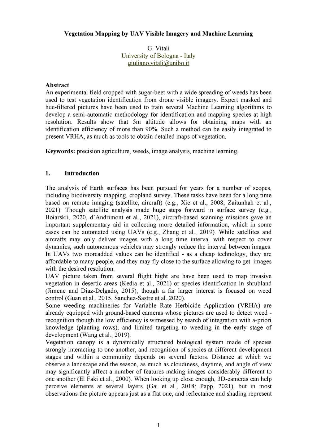 Vegetation Mapping by UAV Visible Imagery and Machine Learning