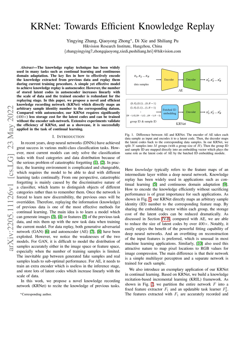 The knowledge replay technique has been widely used in many tasks such as continual learning and continuous domain adaptation. The key lies in how to effectively encode the knowledge extracted from previous data and replay them during current training procedure. A simple yet effective model to achieve knowledge replay is autoencoder. However, the number of stored latent codes in autoencoder increases linearly with the scale of data and the trained encoder is redundant for the replaying stage. In this paper, we propose a novel and efficient knowledge recording network (KRNet) which directly maps an arbitrary sample identity number to the corresponding datum. Compared with autoencoder, our KRNet requires significantly () less storage cost for the latent codes and can be trained without the encoder sub-network. Extensive experiments validate the efficiency of KRNet, and as a showcase, it is successfully applied in the task of continual learning.