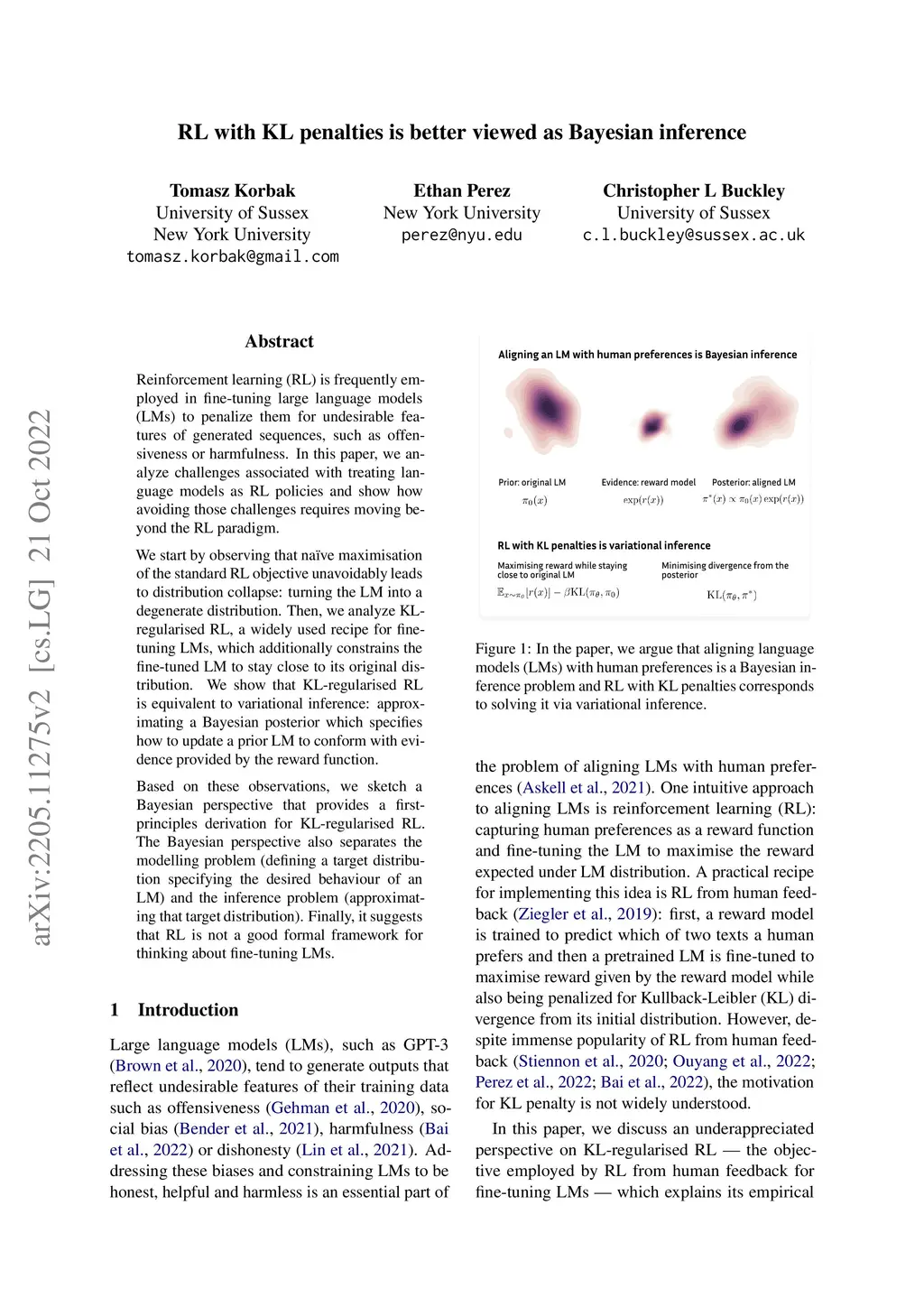 RL with KL penalties is better viewed as Bayesian inference