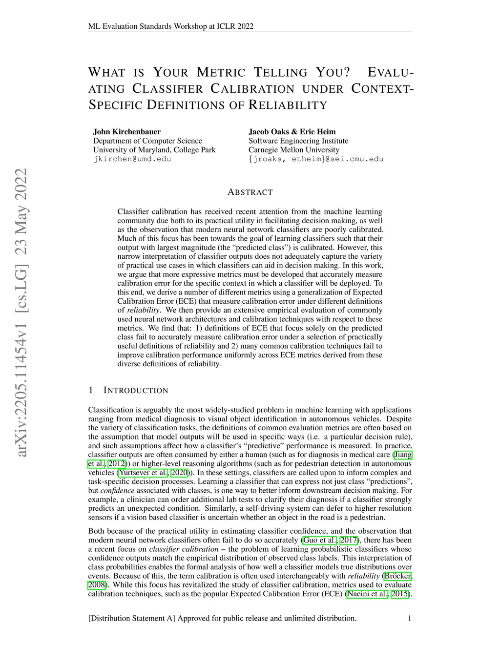 Classifier calibration has received recent attention from the machine learning community due both to its practical utility in facilitating decision making, as well as the observation that modern neural network classifiers are poorly calibrated. Much of this focus has been towards the goal of learning classifiers such that their output with largest magnitude (the "predicted class") is calibrated. However, this narrow interpretation of classifier outputs does not adequately capture the variety of practical use cases in which classifiers can aid in decision making. In this work, we argue that more expressive metrics must be developed that accurately measure calibration error for the specific context in which a classifier will be deployed. To this end, we derive a number of different metrics using a generalization of Expected Calibration Error (ECE) that measure calibration error under different definitions of reliability. We then provide an extensive empirical evaluation of commonly used neural network architectures and calibration techniques with respect to these metrics. We find that: 1) definitions of ECE that focus solely on the predicted class fail to accurately measure calibration error under a selection of practically useful definitions of reliability and 2) many common calibration techniques fail to improve calibration performance uniformly across ECE metrics derived from these diverse definitions of reliability.
