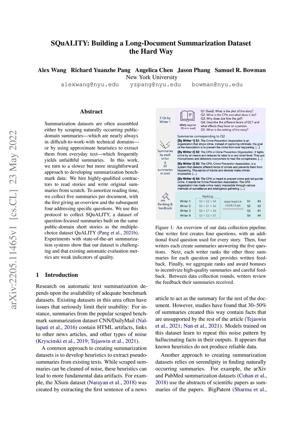 SQuALITY: Building a Long-Document Summarization Dataset the Hard Way
