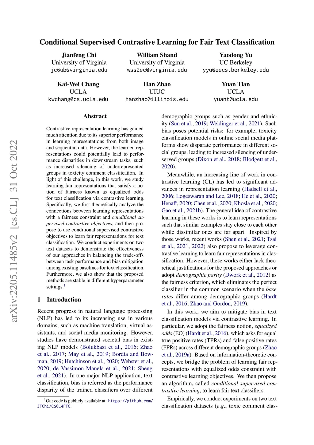 Conditional Supervised Contrastive Learning for Fair Text Classification