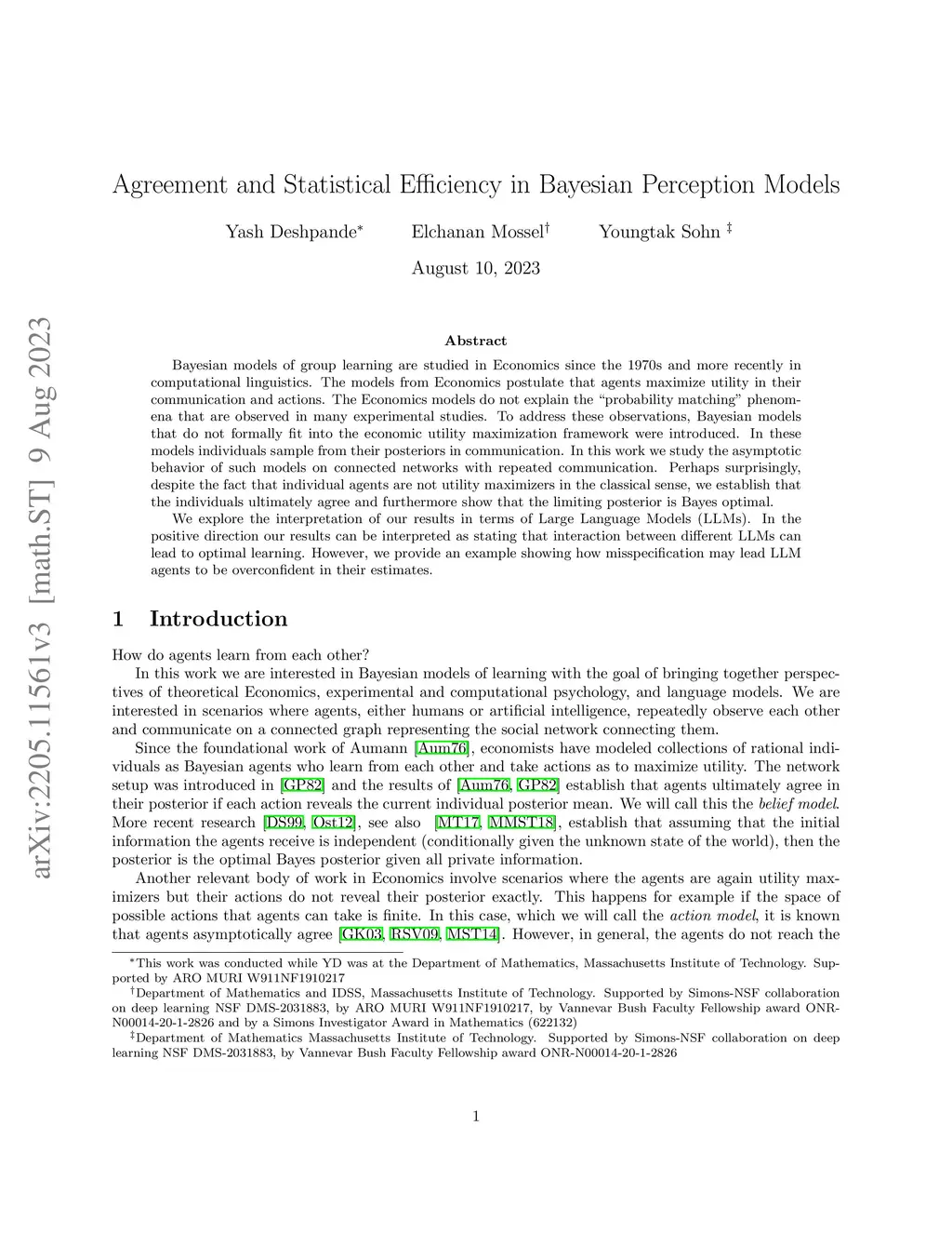 Bayesian models of group learning are studied in Economics since the 1970s. and more recently in computational linguistics. The models from Economics postulate that agents maximize utility in their communication and actions. The Economics models do not explain the ``probability matching" phenomena that are observed in many experimental studies. To address these observations, Bayesian models that do not formally fit into the economic utility maximization framework were introduced. In these models individuals sample from their posteriors in communication. In this work we study the asymptotic behavior of such models on connected networks with repeated communication. Perhaps surprisingly, despite the fact that individual agents are not utility maximizers in the classical sense, we establish that the individuals ultimately agree and furthermore show that the limiting posterior is Bayes optimal. We explore the interpretation of our results in terms of Large Language Models (LLMs). In the positive direction our results can be interpreted as stating that interaction between different LLMs can lead to optimal learning. However, we provide an example showing how misspecification may lead LLM agents to be overconfident in their estimates.