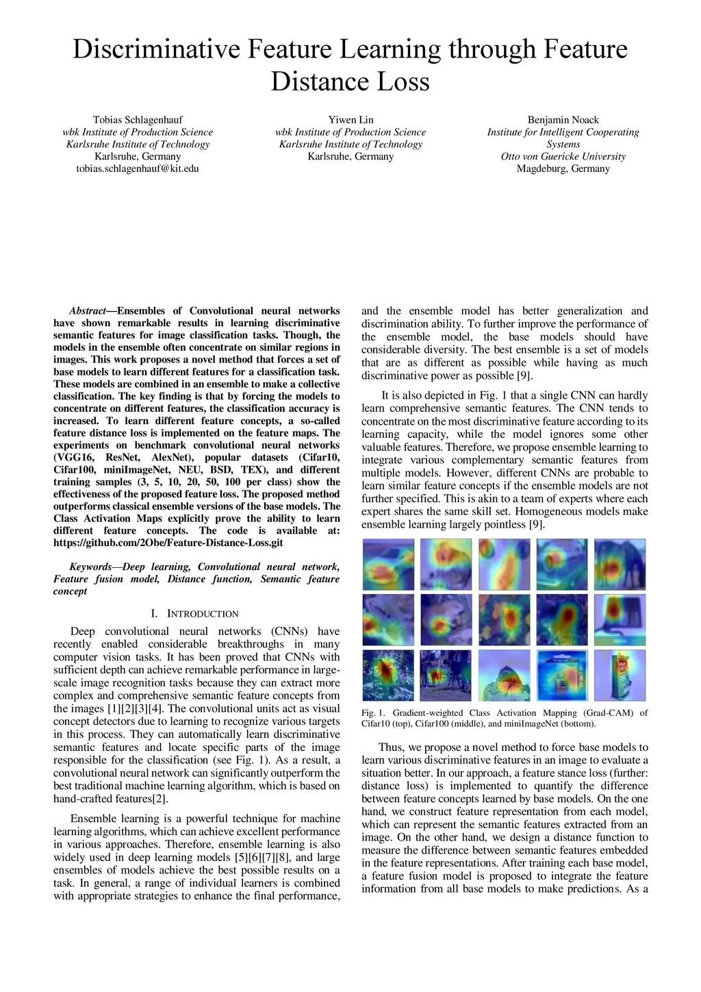 Ensembles of Convolutional neural networks have shown remarkable results in learning discriminative semantic features for image classification tasks. Though, the models in the ensemble often concentrate on similar regions in images. This work proposes a novel method that forces a set of base models to learn different features for a classification task. These models are combined in an ensemble to make a collective classification. The key finding is that by forcing the models to concentrate on different features, the classification accuracy is increased. To learn different feature concepts, a so-called feature distance loss is implemented on the feature maps. The experiments on benchmark convolutional neural networks (VGG16, ResNet, AlexNet), popular datasets (Cifar10, Cifar100, miniImageNet, NEU, BSD, TEX), and different training samples (3, 5, 10, 20, 50, 100 per class) show the effectiveness of the proposed feature loss. The proposed method outperforms classical ensemble versions of the base models. The Class Activation Maps explicitly prove the ability to learn different feature concepts. The code is available at: https://github.com/2Obe/Feature-Distance-Loss.git