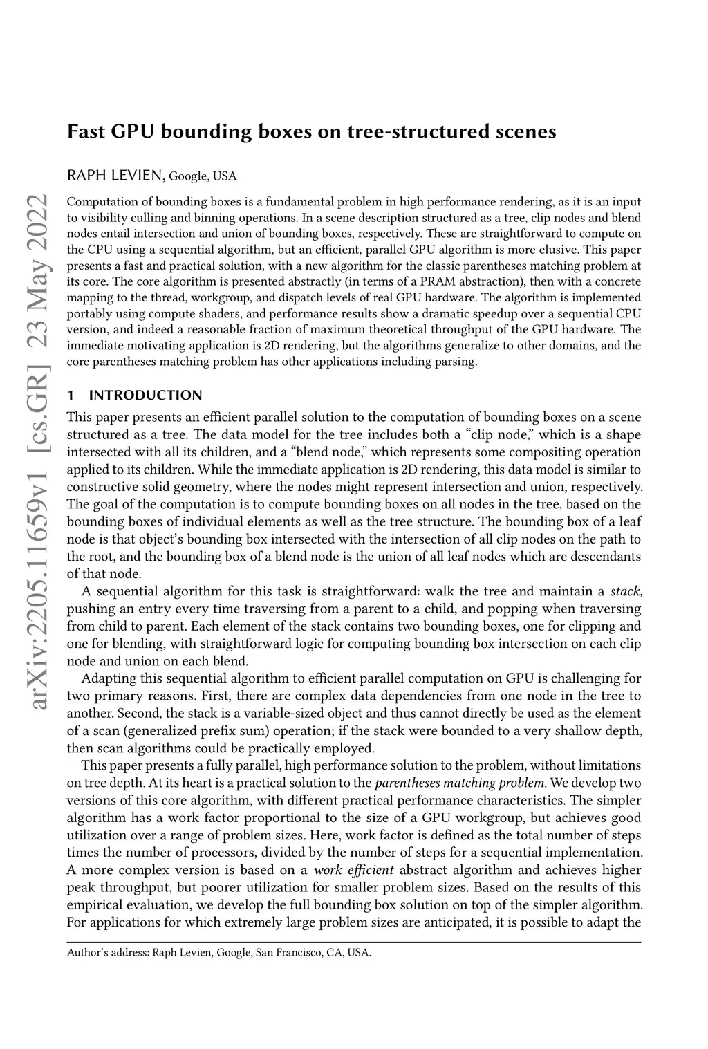 Fast GPU bounding boxes on tree-structured scenes