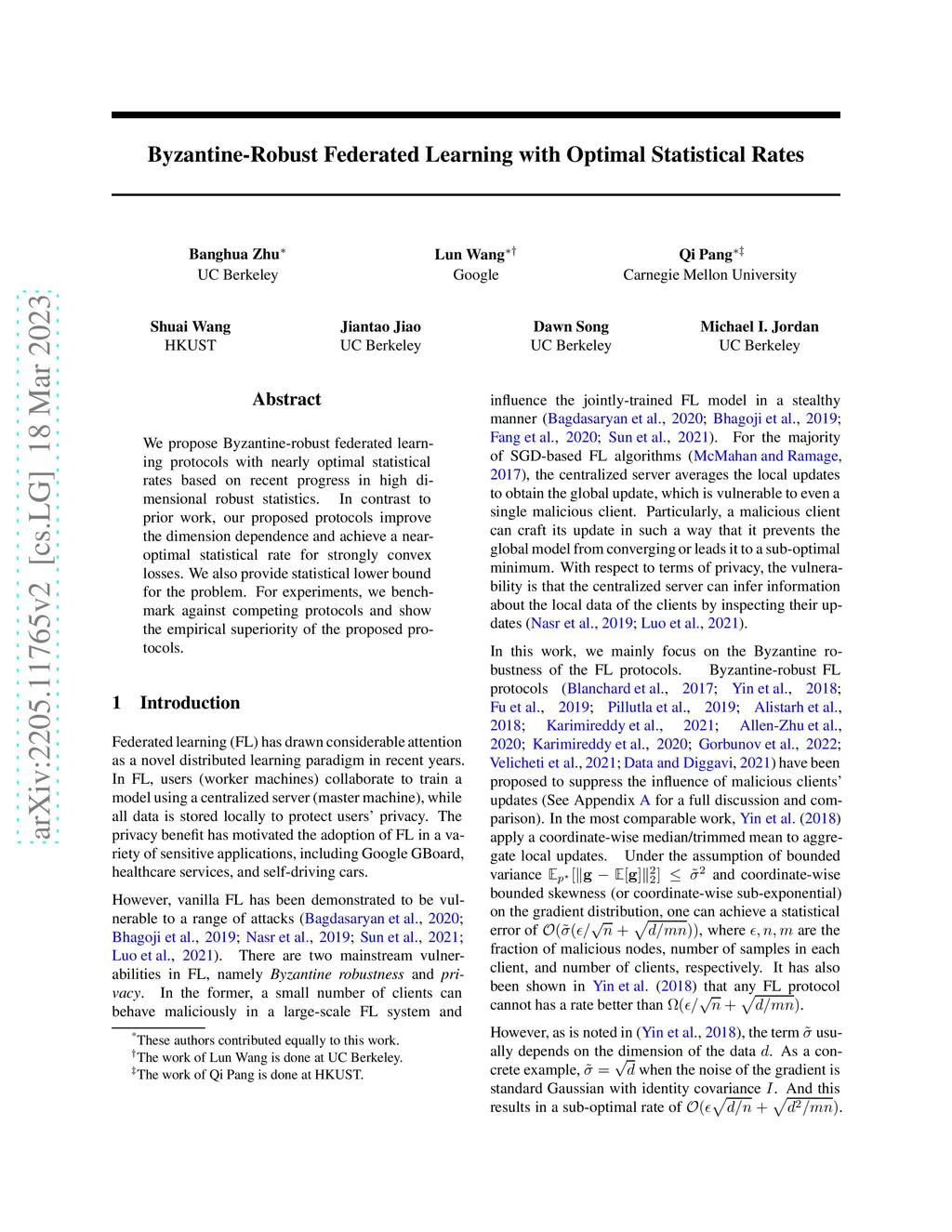 We propose Byzantine-robust federated learning protocols with nearly optimal statistical rates. In contrast to prior work, our proposed protocols improve the dimension dependence and achieve a tight statistical rate in terms of all the parameters for strongly convex losses. We benchmark against competing protocols and show the empirical superiority of the proposed protocols. Finally, we remark that our protocols with bucketing can be naturally combined with privacy-guaranteeing procedures to introduce security against a semi-honest server. The code for evaluation is provided in https://github.com/wanglun1996/secure-robust-federated-learning.
