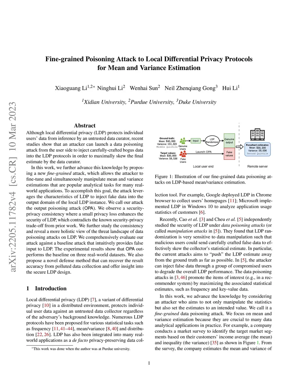 Although local differential privacy (LDP) protects individual users' data from inference by an untrusted data curator, recent studies show that an attacker can launch a data poisoning attack from the user side to inject carefully-crafted bogus data into the LDP protocols in order to maximally skew the final estimate by the data curator. In this work, we further advance this knowledge by proposing a new fine-grained attack, which allows the attacker to fine-tune and simultaneously manipulate mean and variance estimations that are popular analytical tasks for many real-world applications. To accomplish this goal, the attack leverages the characteristics of LDP to inject fake data into the output domain of the local LDP instance. We call our attack the output poisoning attack (OPA). We observe a security-privacy consistency where a small privacy loss enhances the security of LDP, which contradicts the known security-privacy trade-off from prior work. We further study the consistency and reveal a more holistic view of the threat landscape of data poisoning attacks on LDP. We comprehensively evaluate our attack against a baseline attack that intuitively provides false input to LDP. The experimental results show that OPA outperforms the baseline on three real-world datasets. We also propose a novel defense method that can recover the result accuracy from polluted data collection and offer insight into the secure LDP design.