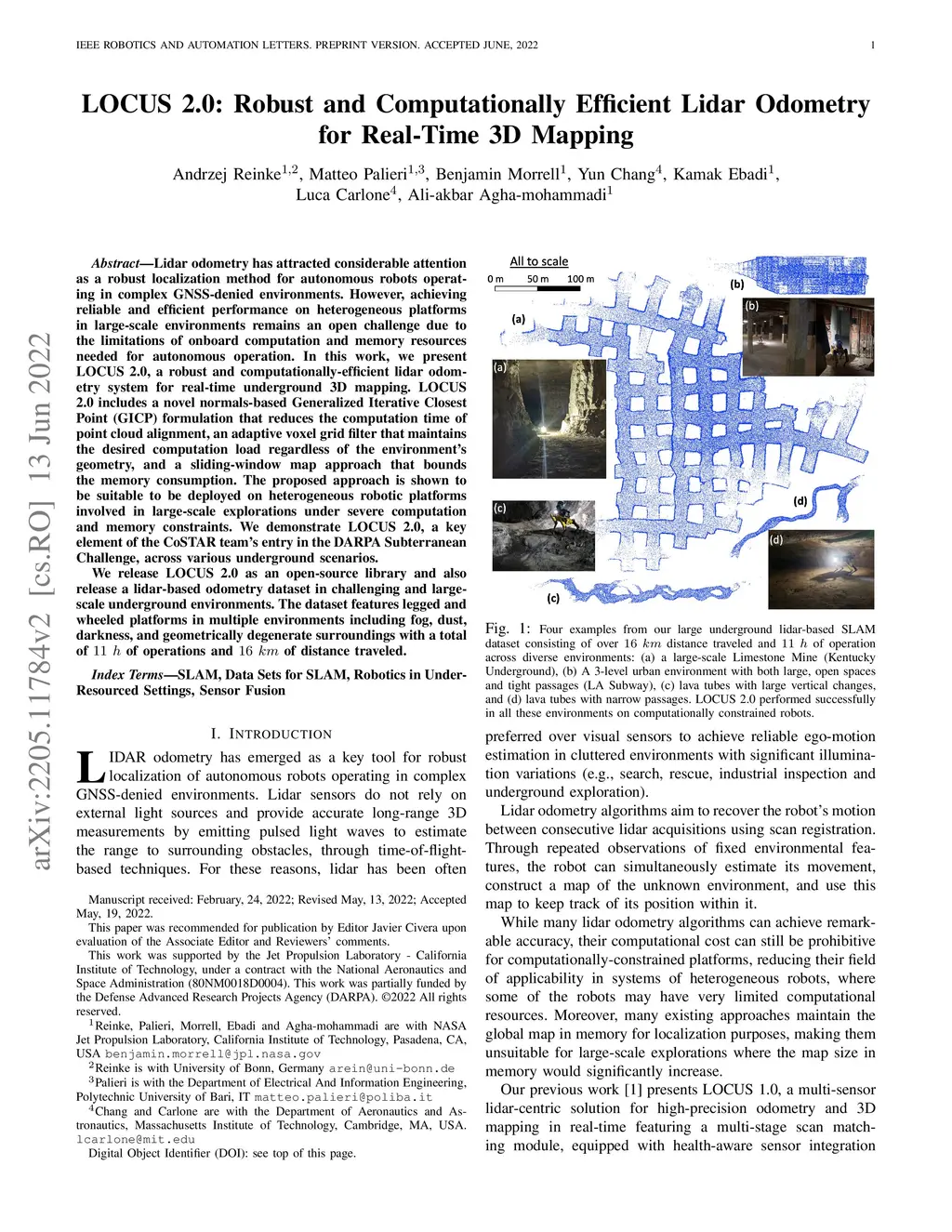 Lidar odometry has attracted considerable attention as a robust localization method for autonomous robots operating in complex GNSS-denied environments. However, achieving reliable and efficient performance on heterogeneous platforms in large-scale environments remains an open challenge due to the limitations of onboard computation and memory resources needed for autonomous operation. In this work, we present LOCUS 2.0, a robust and computationally-efficient \lidar odometry system for real-time underground 3D mapping. LOCUS 2.0 includes a novel normals-based \morrell{Generalized Iterative Closest Point (GICP)} formulation that reduces the computation time of point cloud alignment, an adaptive voxel grid filter that maintains the desired computation load regardless of the environment's geometry, and a sliding-window map approach that bounds the memory consumption. The proposed approach is shown to be suitable to be deployed on heterogeneous robotic platforms involved in large-scale explorations under severe computation and memory constraints. We demonstrate LOCUS 2.0, a key element of the CoSTAR team's entry in the DARPA Subterranean Challenge, across various underground scenarios. We release LOCUS 2.0 as an open-source library and also release a \lidar-based odometry dataset in challenging and large-scale underground environments. The dataset features legged and wheeled platforms in multiple environments including fog, dust, darkness, and geometrically degenerate surroundings with a total of of operations and of distance traveled.
