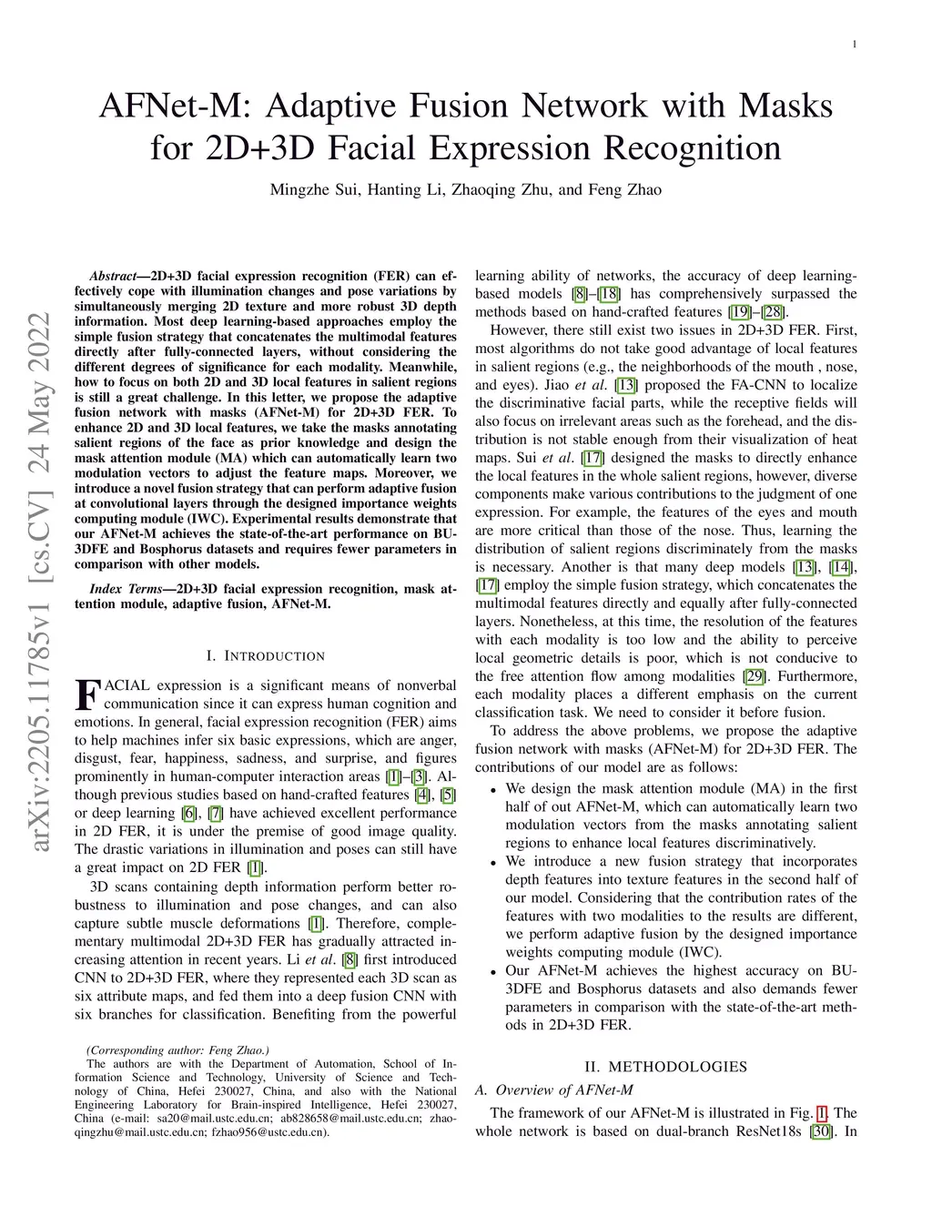 AFNet-M: Adaptive Fusion Network with Masks for 2D+3D Facial Expression