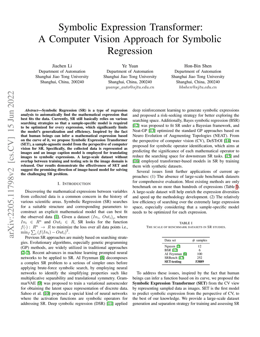 Symbolic Regression (SR) is a type of regression analysis to automatically find the mathematical expression that best fits the data. Currently, SR still basically relies on various searching strategies so that a sample-specific model is required to be optimized for every expression, which significantly limits the model's generalization and efficiency. Inspired by the fact that human beings can infer a mathematical expression based on the curve of it, we propose Symbolic Expression Transformer (SET), a sample-agnostic model from the perspective of computer vision for SR. Specifically, the collected data is represented as images and an image caption model is employed for translating images to symbolic expressions. A large-scale dataset without overlap between training and testing sets in the image domain is released. Our results demonstrate the effectiveness of SET and suggest the promising direction of image-based model for solving the challenging SR problem.