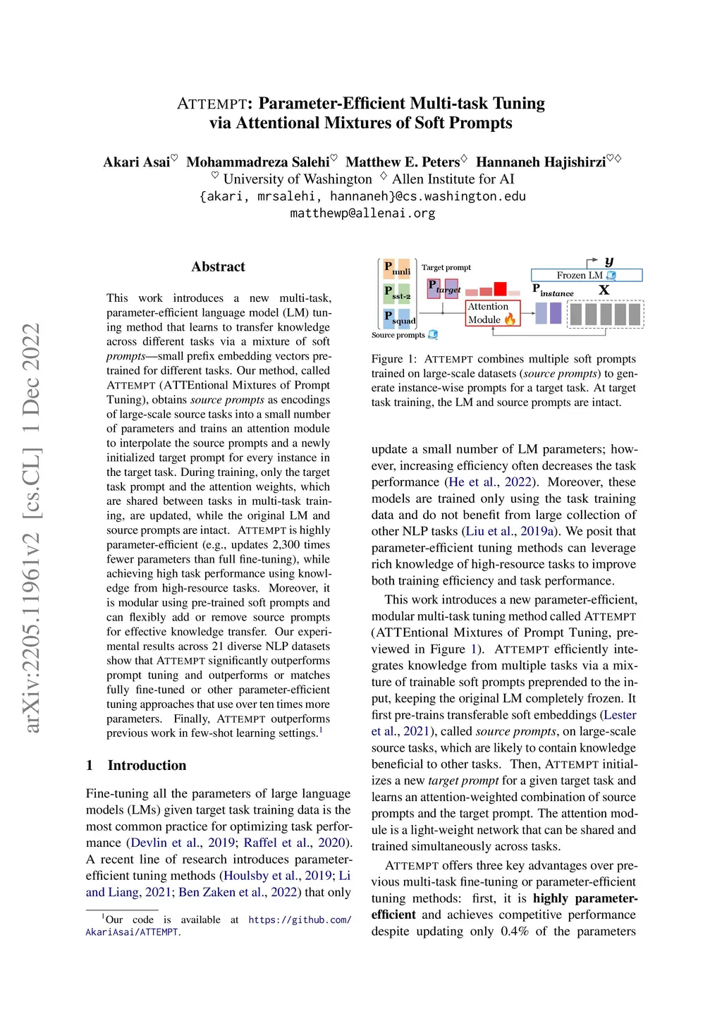 ATTEMPT: Parameter-Efficient Multi-task Tuning via Attentional Mixtures