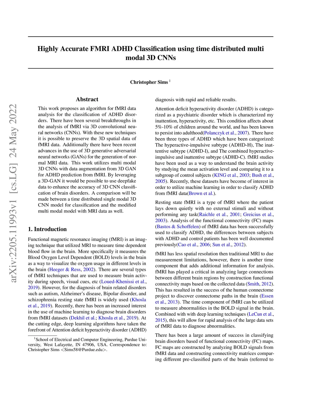 This work proposes an algorithm for fMRI data analysis for the classification of ADHD disorders. There have been several breakthroughs in the analysis of fMRI via 3D convolutional neural networks (CNNs). With these new techniques it is possible to preserve the 3D spatial data of fMRI data. Additionally there have been recent advances in the use of 3D generative adversarial neural networks (GANs) for the generation of normal MRI data. This work utilizes multi modal 3D CNNs with data augmentation from 3D GAN for ADHD prediction from fMRI. By leveraging a 3D-GAN it would be possible to use deepfake data to enhance the accuracy of 3D CNN classification of brain disorders. A comparison will be made between a time distributed single modal 3D CNN model for classification and the modified multi modal model with MRI data as well.