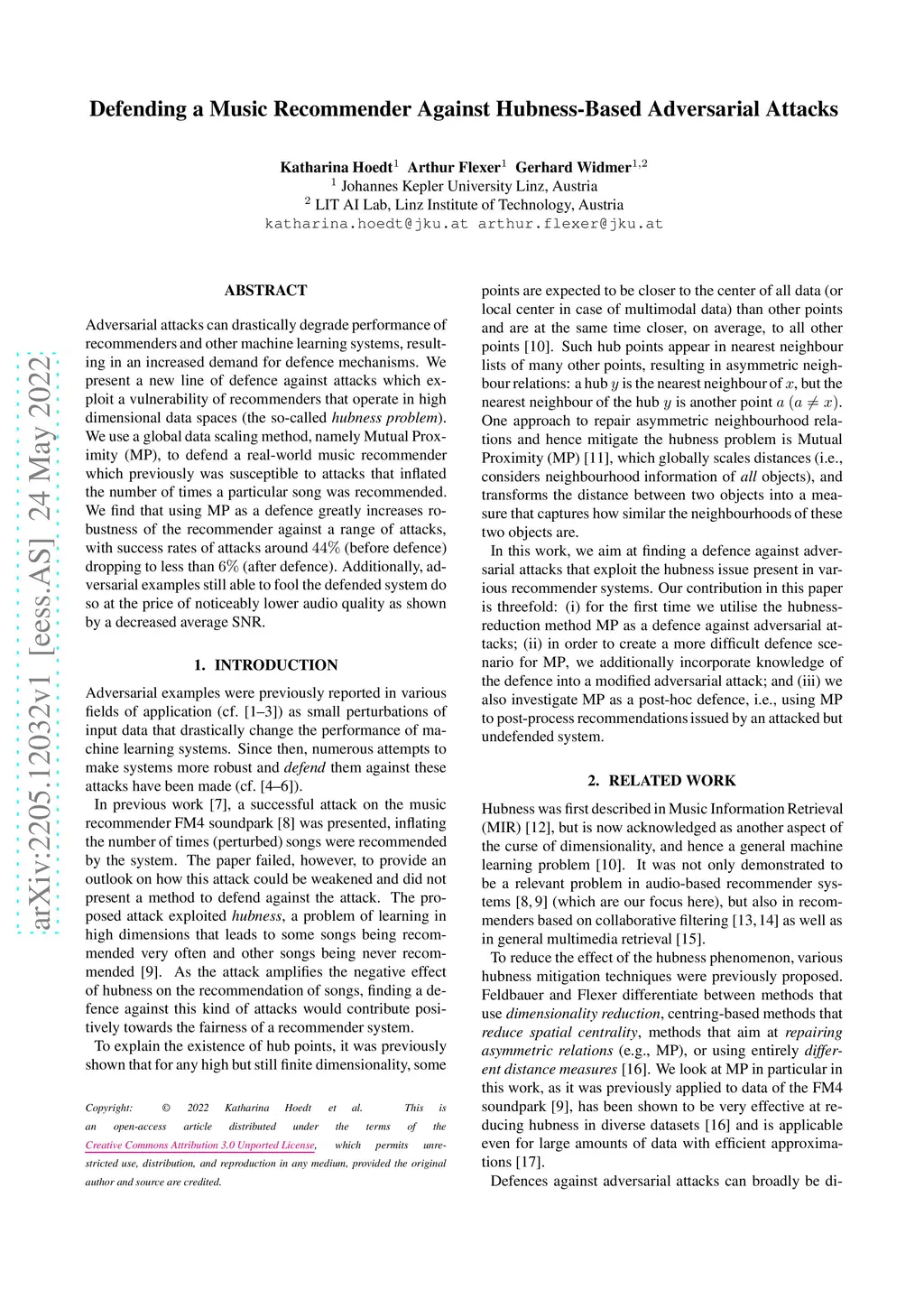 Defending a Music Recommender Against Hubness-Based Adversarial Attacks