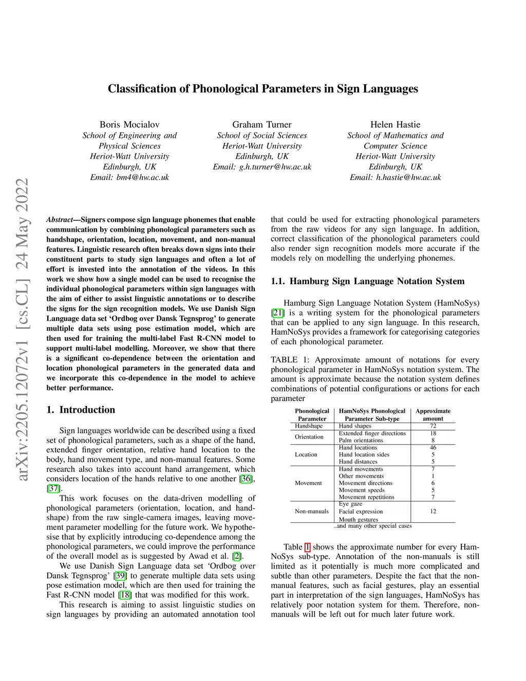 Classification of Phonological Parameters in Sign Languages