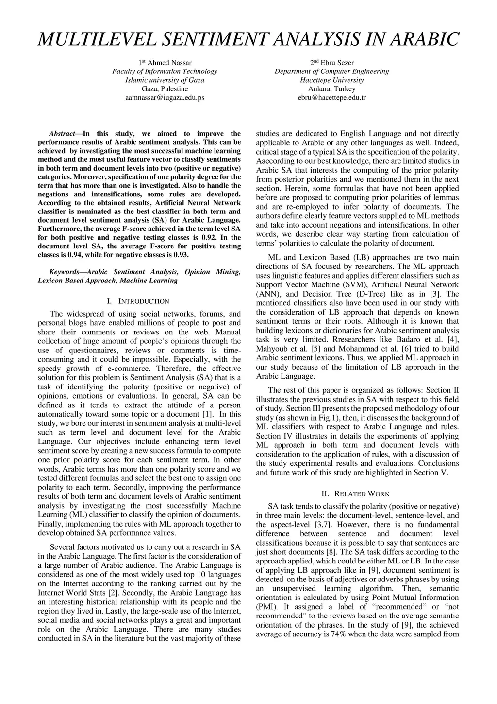 Multilevel sentiment analysis in arabic