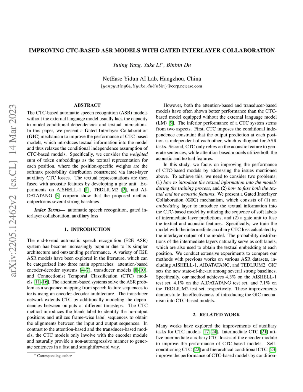 The CTC-based automatic speech recognition (ASR) models without the external language model usually lack the capacity to model conditional dependencies and textual interactions. In this paper, we present a Gated Interlayer Collaboration (GIC) mechanism to improve the performance of CTC-based models, which introduces textual information into the model and thus relaxes the conditional independence assumption of CTC-based models. Specifically, we consider the weighted sum of token embeddings as the textual representation for each position, where the position-specific weights are the softmax probability distribution constructed via inter-layer auxiliary CTC losses. The textual representations are then fused with acoustic features by developing a gate unit. Experiments on AISHELL-1, TEDLIUM2, and AIDATATANG corpora show that the proposed method outperforms several strong baselines.