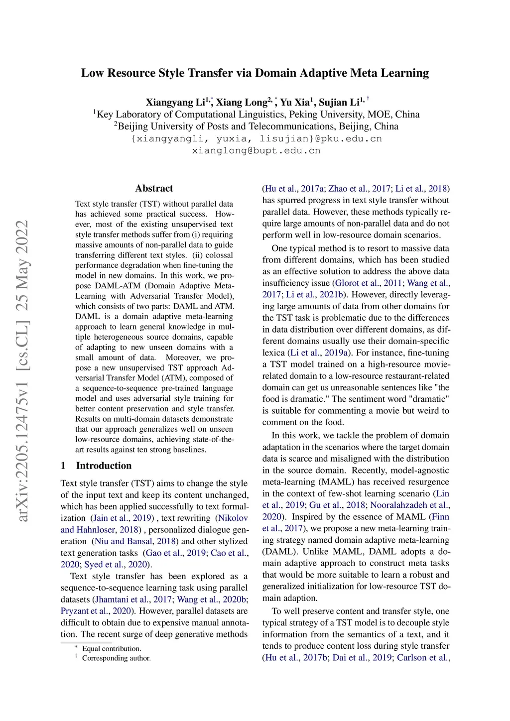 Low Resource Style Transfer via Domain Adaptive Meta Learning