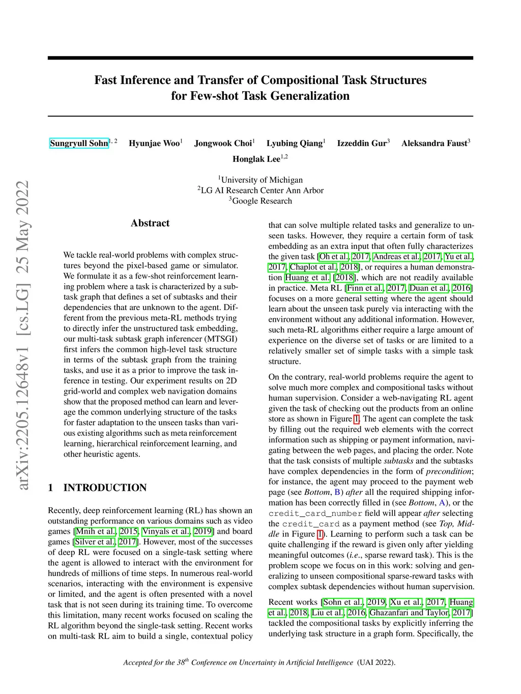 We tackle real-world problems with complex structures beyond the pixel-based game or simulator. We formulate it as a few-shot reinforcement learning problem where a task is characterized by a subtask graph that defines a set of subtasks and their dependencies that are unknown to the agent. Different from the previous meta-rl methods trying to directly infer the unstructured task embedding, our multi-task subtask graph inferencer (MTSGI) first infers the common high-level task structure in terms of the subtask graph from the training tasks, and use it as a prior to improve the task inference in testing. Our experiment results on 2D grid-world and complex web navigation domains show that the proposed method can learn and leverage the common underlying structure of the tasks for faster adaptation to the unseen tasks than various existing algorithms such as meta reinforcement learning, hierarchical reinforcement learning, and other heuristic agents.