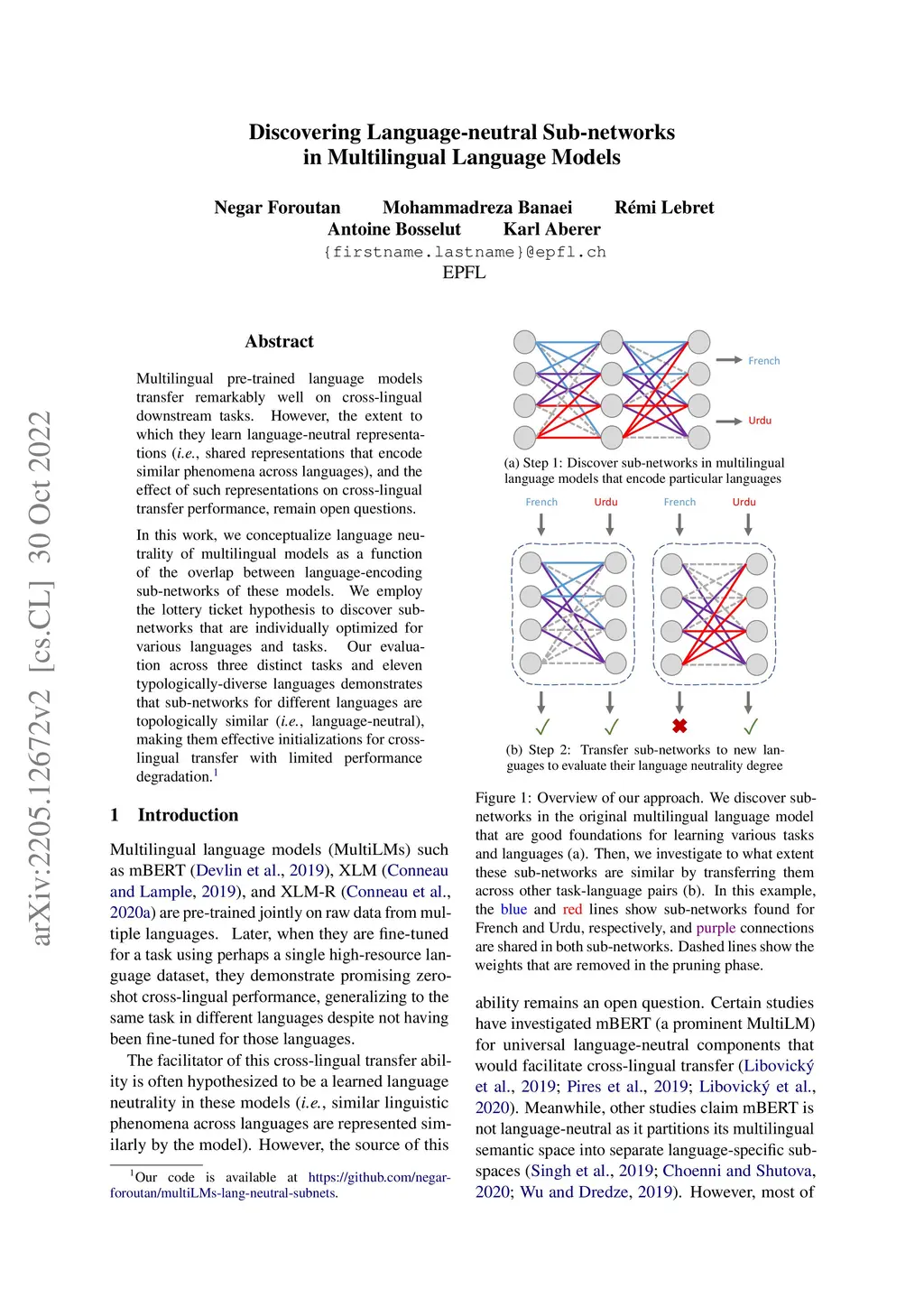 Discovering Language-neutral Sub-networks in Multilingual Language