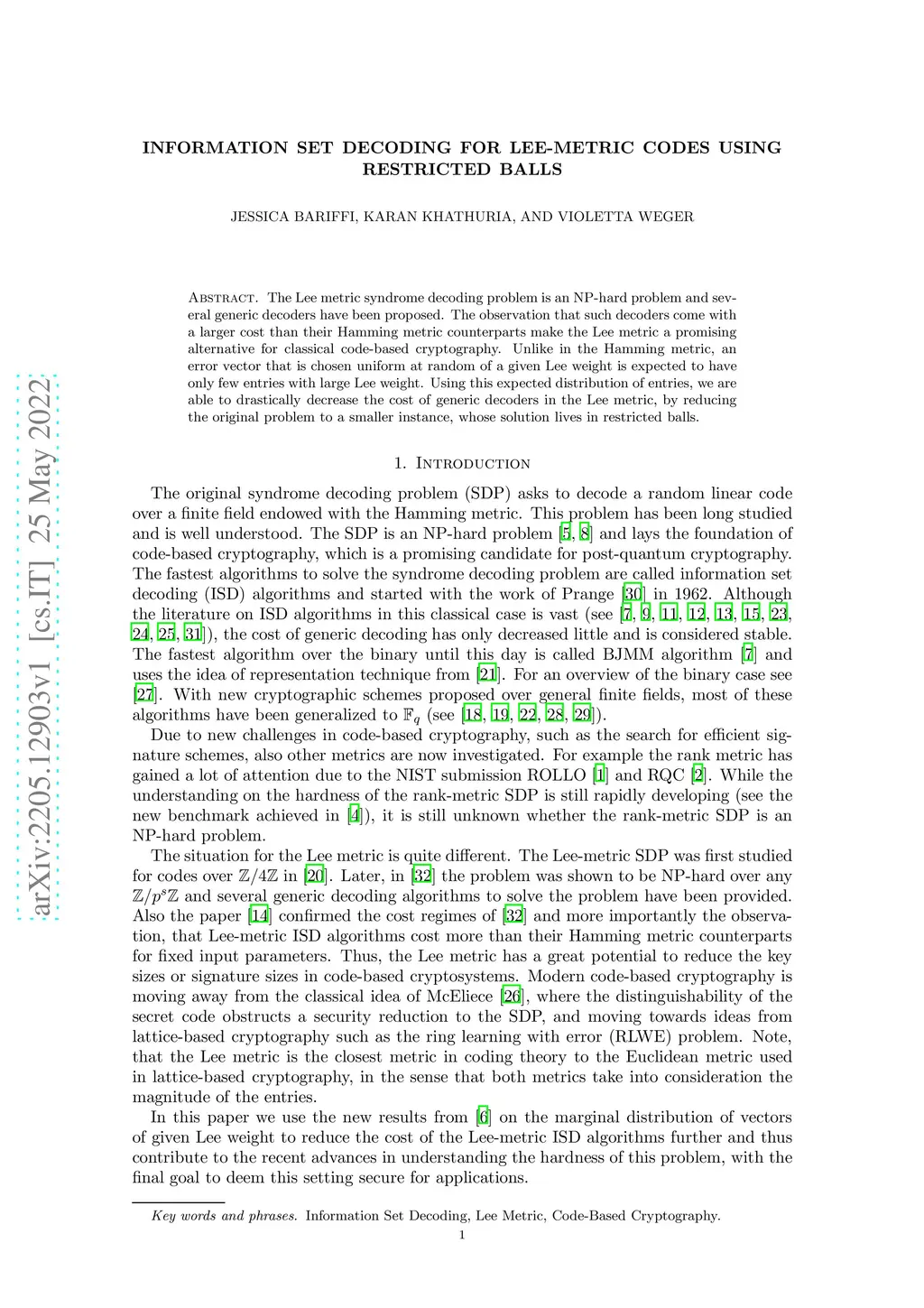 The Lee metric syndrome decoding problem is an NP-hard problem and several generic decoders have been proposed. The observation that such decoders come with a larger cost than their Hamming metric counterparts make the Lee metric a promising alternative for classical code-based cryptography. Unlike in the Hamming metric, an error vector that is chosen uniform at random of a given Lee weight is expected to have only few entries with large Lee weight. Using this expected distribution of entries, we are able to drastically decrease the cost of generic decoders in the Lee metric, by reducing the original problem to a smaller instance, whose solution lives in restricted balls.